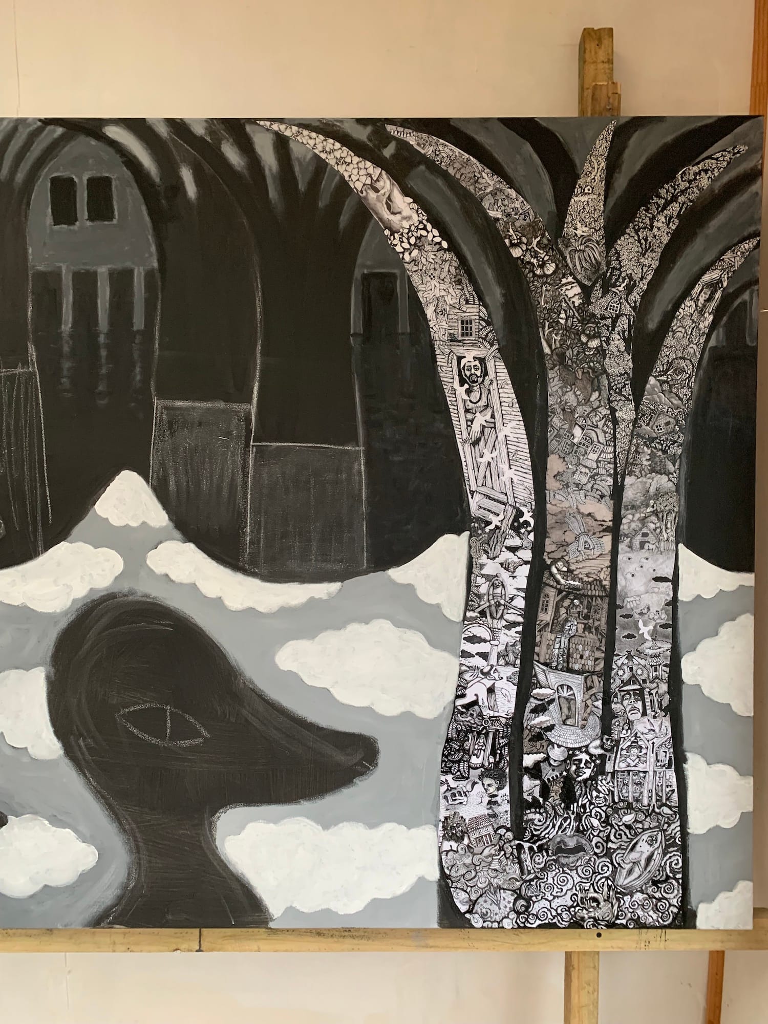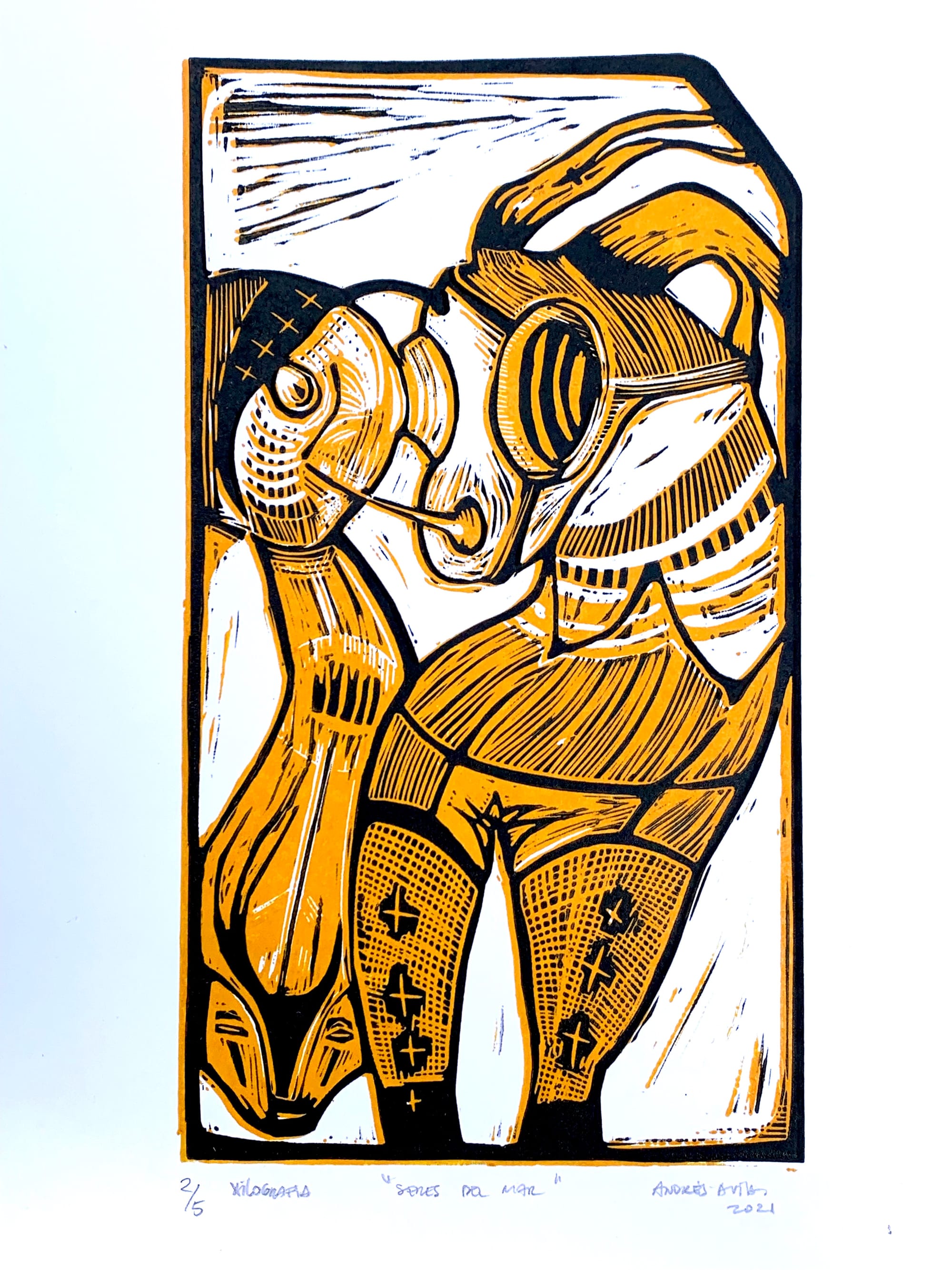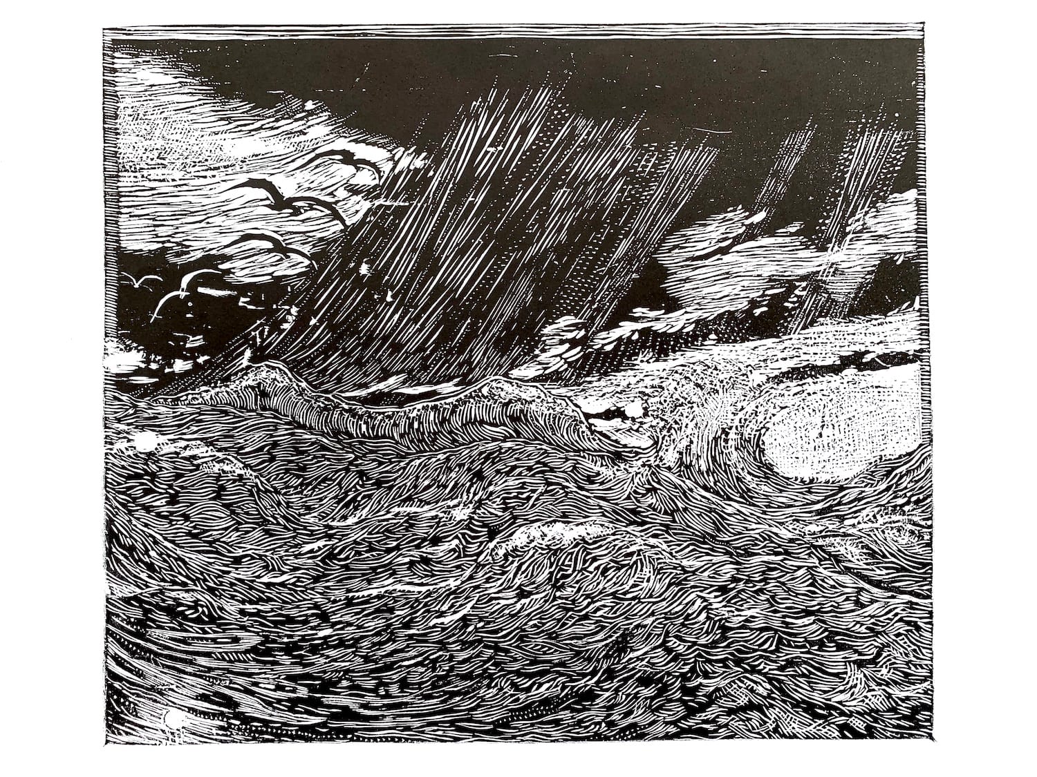 But the thing is, I do take it very seriously, or at least I feel I have to while I’m here, engaged with the work of local artists. We spent our first night on the trip in a lakeside town on mainland Chile called Puerto Varas, where Esteban Pérez, Ramón’s former student, shared his fantastic handmade animations as well as his ongoing research into Chiloé’s spiritual dimension. So far, we’ve had quite memorable visits with four more artists: genre painter Anelys Wolf, who sometimes merges frames from Raul Ruíz’s more obscure films with glimpses of Chilote seascapes; collagist/painter Guillermo Grez, whose mystical works crackle with animism; photographer Pablo Carvacho, who abandoned a high-pressure professional life in Santiago and moved to a semi-remote corner of Chiloé with his family; and printmaker/instructor Rafael Lara, whose work is charged with powerful symbolism derived from his Mapuche ancestry. While their work doesn’t overlap stylistically, what all five artists share is that when the conversation inevitably turns to the mystique of Chiloé, nobody treats it as a joke.