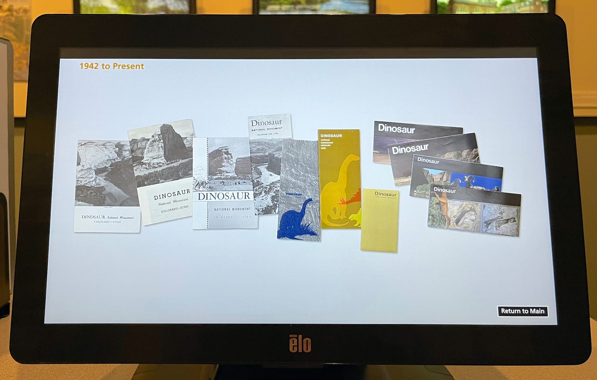 Ideas surrounding change over time stand out as one of the show's richest themes. The stories we tell are rarely stable for long. One of the videos that most directly addresses this point is “The Story of the Unigrid Brochure” (which can be streamed). The video illustrates the evolution of the Dinosaur National Park brochure from 1942 to 2020. Though video narrator Betsy Ehrlich, publications production manager for the NPS, primarily emphasizes design, she also offers gentle and consistent reminders about stories both left out and altered.