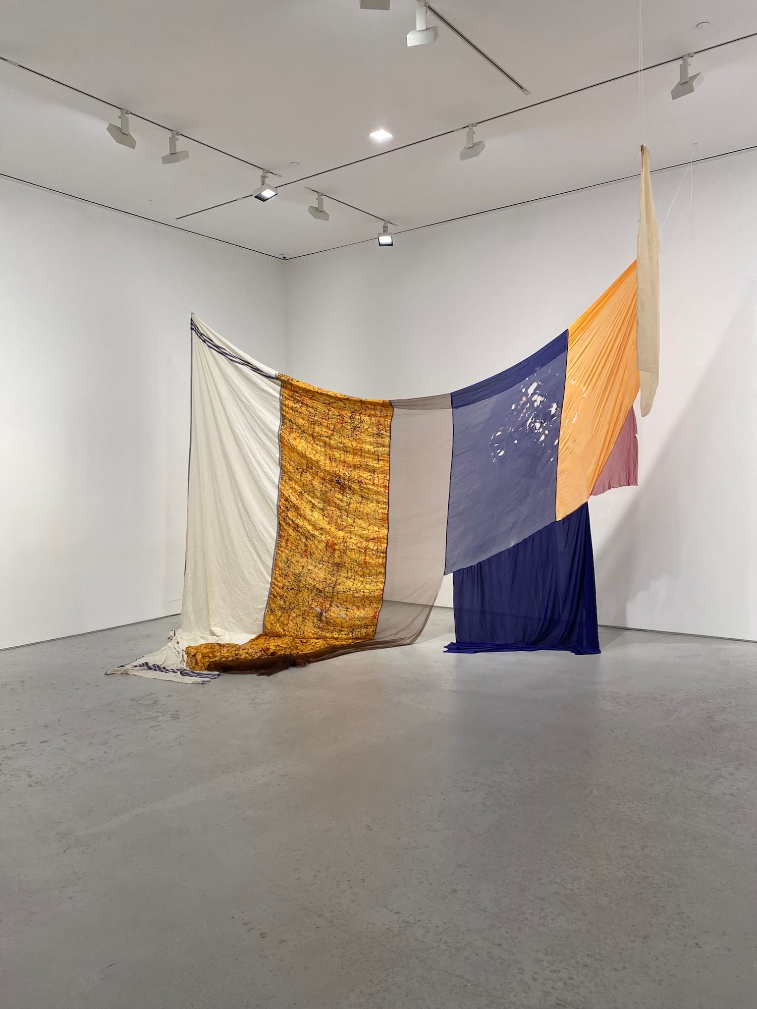 Though the exhibition is framed as having a deep connection to and engagement with Gee’s Bend, and the quilting medium, several of the artworks exist somewhere on the periphery of quilting, or in a separate space altogether. Eddie Rodolfo Aparicio’s large-scale assemblage and Genesis Jerez's linen artwork, for example, feel only loosely connected to the exhibition’s thematic core.