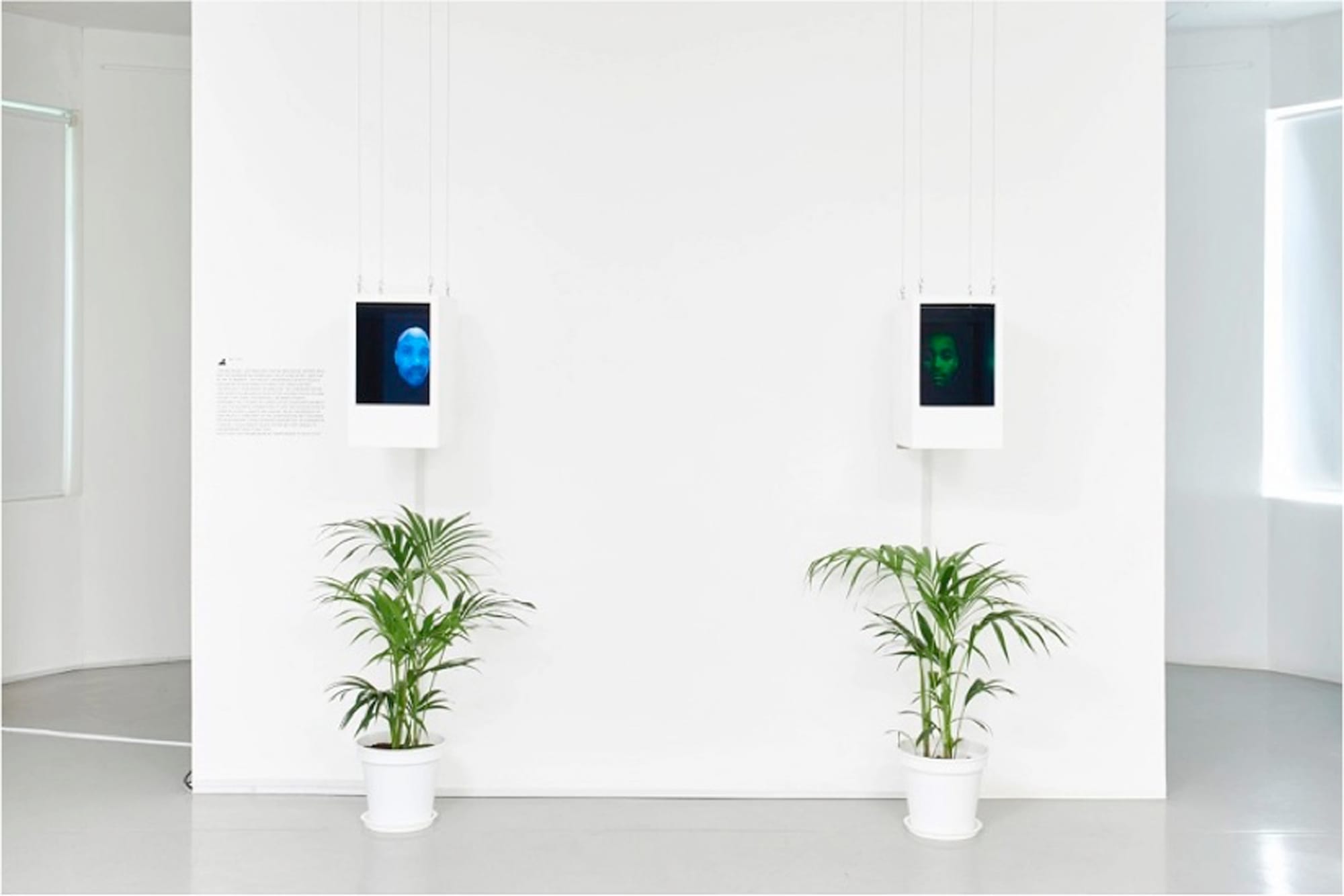 In front of the 9/11 projection is a case with Morehshin Allahyari’s 3-D-printed replica of an ancient figurine destroyed by ISIS in 2015. It is one of three Allahyari artifacts included in the exhibition. Countering what she calls “digital colonialism,” Allahyari prefers to situate her work in institutional archives in the Middle East. The inclusion of her work in The Art Happens Here associates the wiping of internet archives by corporate (Yahoo! of GeoGities) and political (ICANN of .yu) agents with dangerous histories of cultural erasure. The web is host to countless cultural artifacts — artifacts that The Art Happens Here insists are dated by time and specific to place, resisting easy notions of the internet as somehow transcendent. The internet can be collective, the exhibition suggests, but it is experienced individually. Where a user is located matters. The internet she connects to is neither universal, nor complete, nor impervious to ends.