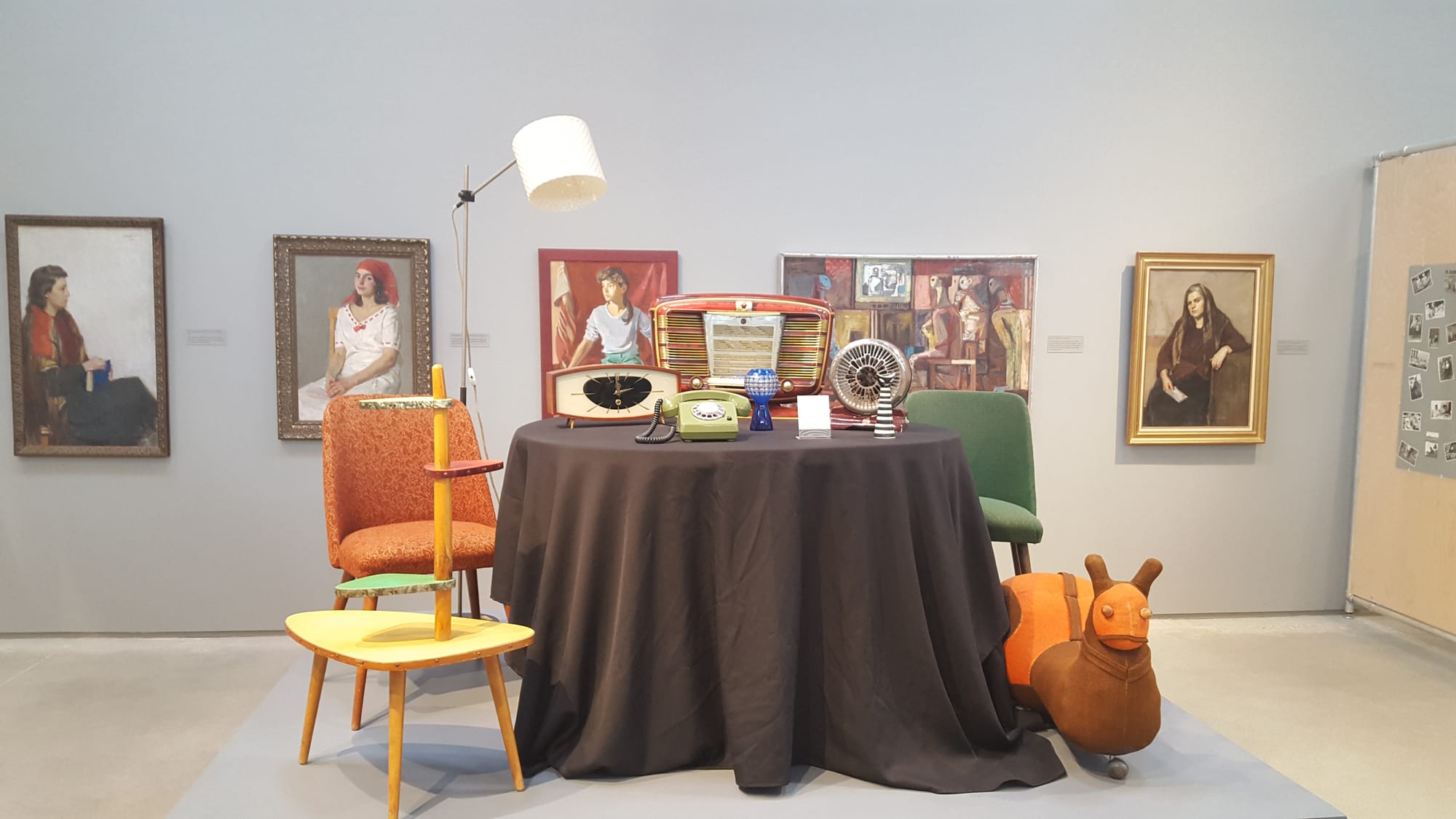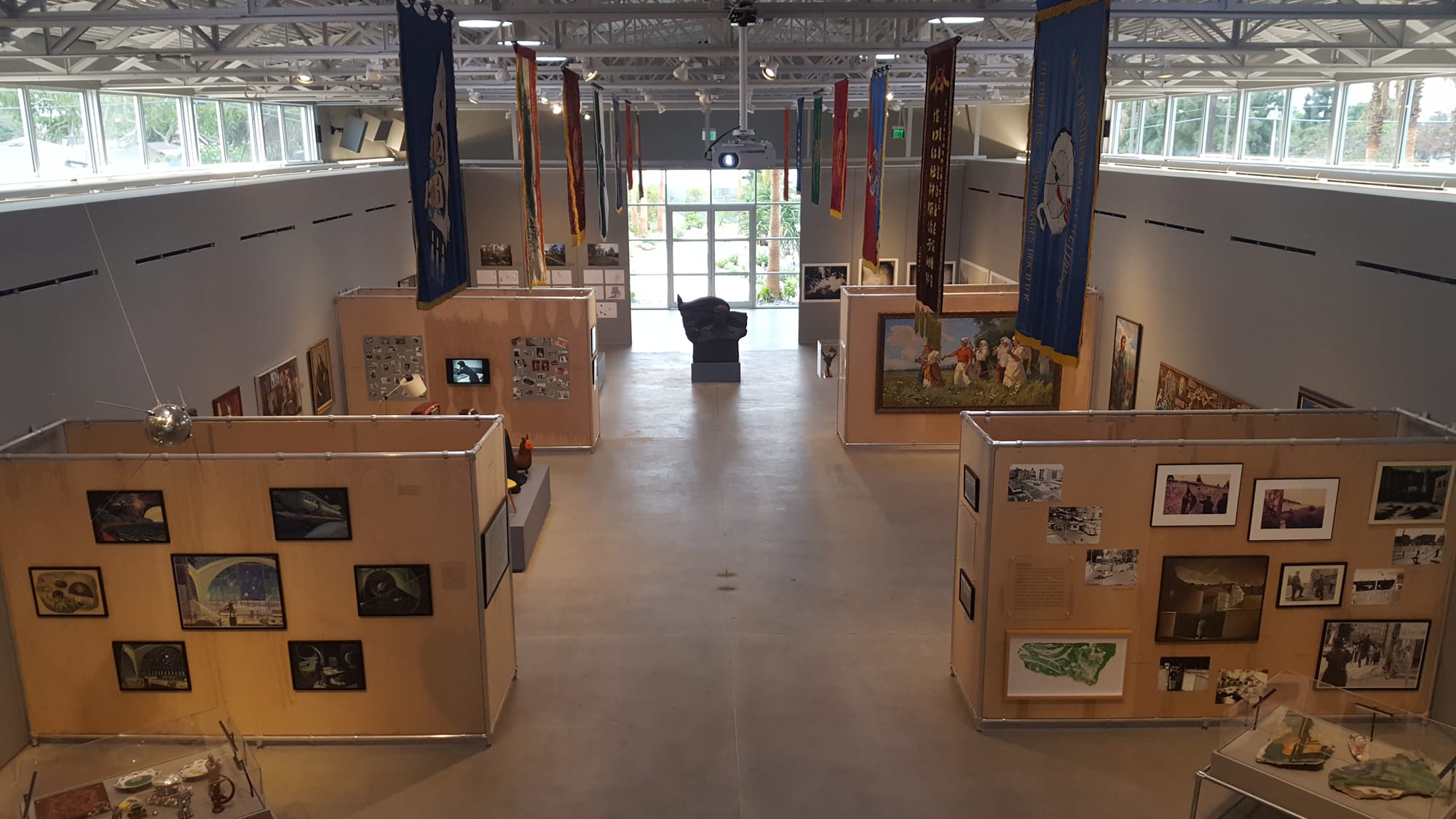 Two large erected walls divide the hangar-like space into three sections. The central floor is for the temporary exhibits — currently Cold War Spaces, which examines the Soviet experience through the lens of different aspects of public and private life, and The Russians, a series of photos of ordinary people taken by Nathan Farb on a trip to Russia in 1977.