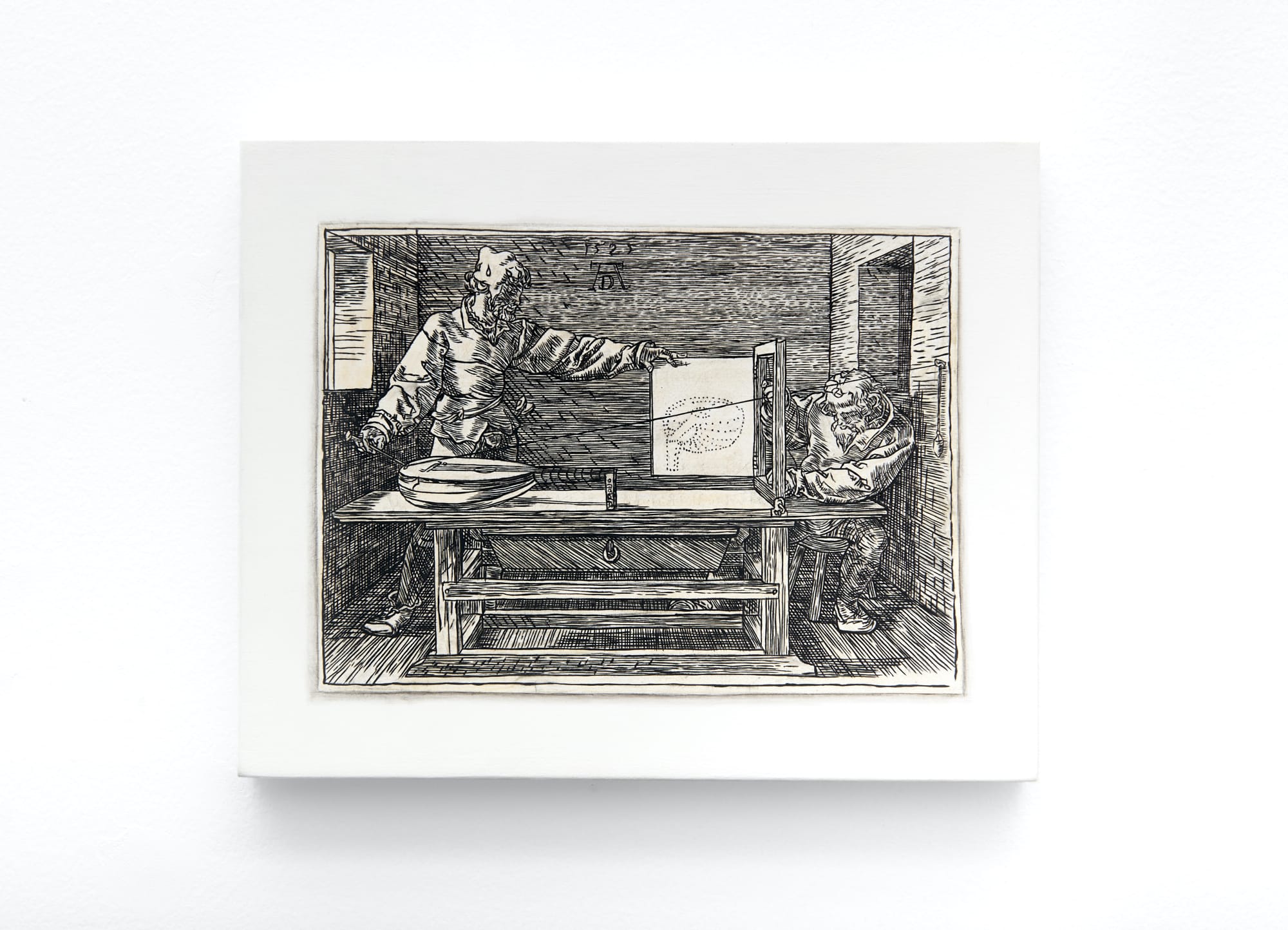 The undated paintings “One to One (The Draughtsman of the Lute by Albrecht Dürer)” and “Chalice (After Albrecht Dürer and The Master of the Morrison Triptych)” reveal two sides of the artist. In the former, he transforms a woodcut measuring around five by seven inches into a slightly larger oil painting (eight by ten inches). Based on a reproduction, Halter’s intimately scaled painting comes across as a venerable homage, a vulnerable object, whose purpose might be talismanic, and an embodiment of yearning. More than just an expression of the artist’s subjectivity, it is a lament for all the knowledge of painting that has been lost to us, from the desire for accuracy and precision that occupied Bosschaert and Dürer to the recognition that nostalgia is part of being a still-life painter. In this sense, Halter’s use of collage is about loss and our inability to see the actual world in all its complexity.