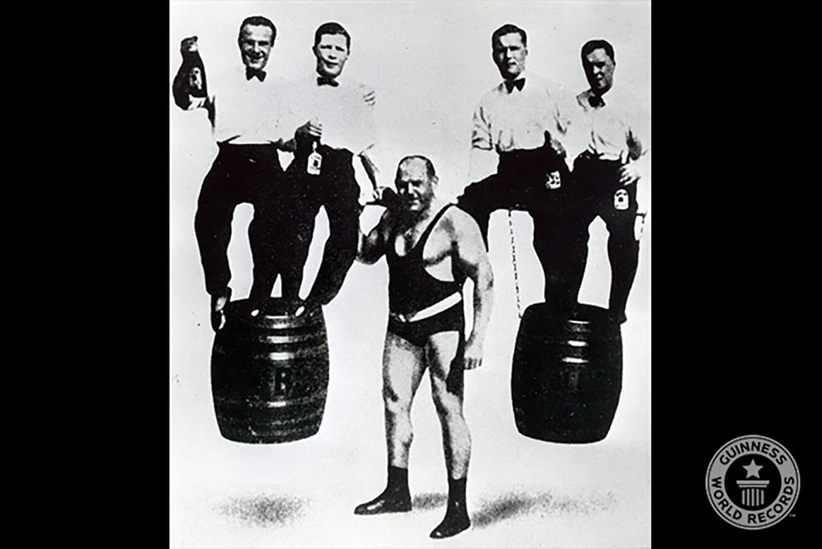 Hermann Goerner (1891-1965) unofficially lifted a 330 kg (727.5 lb) bar with his right hand on October 8, 1920, in Leipzig, Germany.