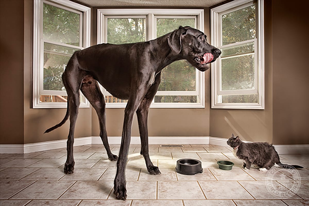 When standing, Zeus reached an incredible height of 2.23 m (7 ft 4 in) when measured in October 2011. The Great Dane belonged to Denise Doorlag from Otsego, Michigan.