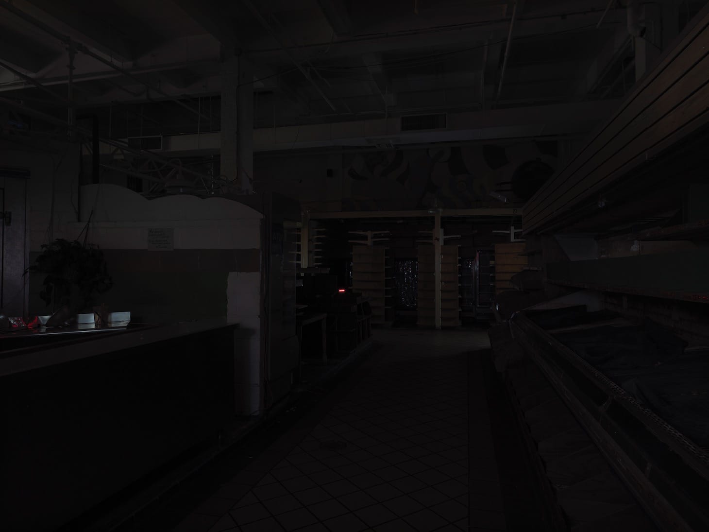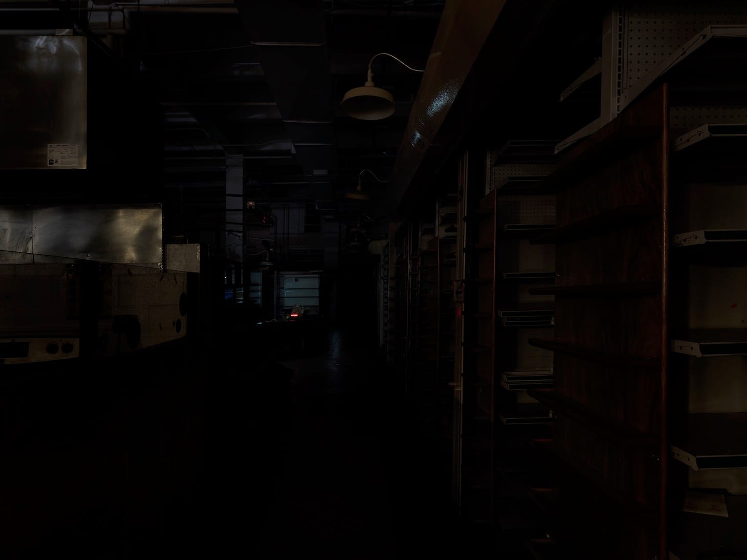 Fixtures are rusting; cabinets are empty; glass displays are askew; storage closets are open and distended. And then there’s a countdown clock displaying red digital numbers that tell me there are perhaps 5 hours left until something (momentous?) happens. Everything is so quiet I feel all the physiological alerts come online as I look. My eyes go as wide as they can. I want to step into a closed, walk-in freezer just to see what’s inside, but then I think if I do, I won’t be found again for days or maybe weeks. Everything here is dying or dead, abandoned as if had pestilence had swept through and scooped up all the life forms mid-sentence. It’s like the set of a dystopian film, I Am Legend, or some such, a husk of civilization. Creatures I can’t describe or fully imagine likely wait for me in the darkness, up a winding staircase I don’t attempt. I keep walking. Then I see Facente still standing sentinel by the door and I hear nothing else move, so I keep going.