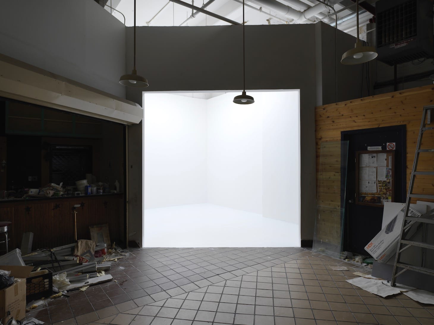 This work, 00 00 00 00 00 [Essex Street Retail Market] a site-specific installation by Andrea Nacciarriti suggests that the white cube is both a brilliant achievement and a crypt. It’s where we bury our fear of being mortal, of wasting away, of slouching into entropy. Ever since the aesthetic was institutionalized by the Museum of Modern Art in the early half of the 20th century, the arts community has wrestled with its meaning. And the ramifications of constructing such spaces became more apparent when the artist and critic Brian O’Doherty published his “Inside the White Cube,” essay in Artforum. The sacralization process which the white cube enables and ennobles now seems, in some instances, to leach the significance from work that needs to be alive. The lights in the gallery are both wonderful and terrifying because they are an achievement of carefully calibrated organization of a space — the opposite of disorder and decline. But then there is nothing of us left in these denuded spaces. We have absented ourselves and then ask the question: Where have we gone?