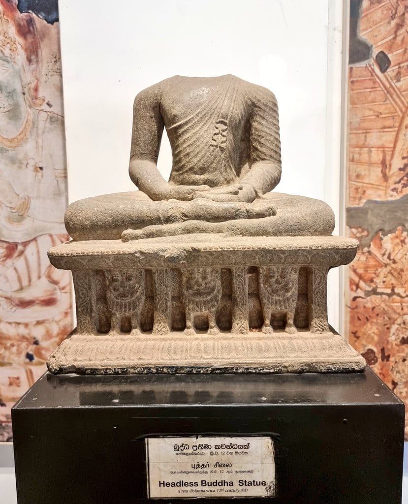 Ever since Western intervention started by way of the Portuguese (1505-1658), Dutch (1658-1796), and British (1796-1948), these cultural objects have been exported en masse. This has resulted in large foreign-held collections of Sri Lanka’s diverse cultural heritage; a search of the Dutch National Museum of World Cultures collection, for example, returns 1,680 objects originating from Sri Lanka, including invaluable Buddha figures, worshipping tools, musical instruments, coins, and jewelry. Within Sri Lanka, such colonial looting has led to beheaded statues, broken stupas, and incomplete temples strewn across the country. Tourists have become accustomed to seeing such visuals without asking critically the role they themselves, as well as their ancestors, have played in the loss of the nation’s cultural heritage.