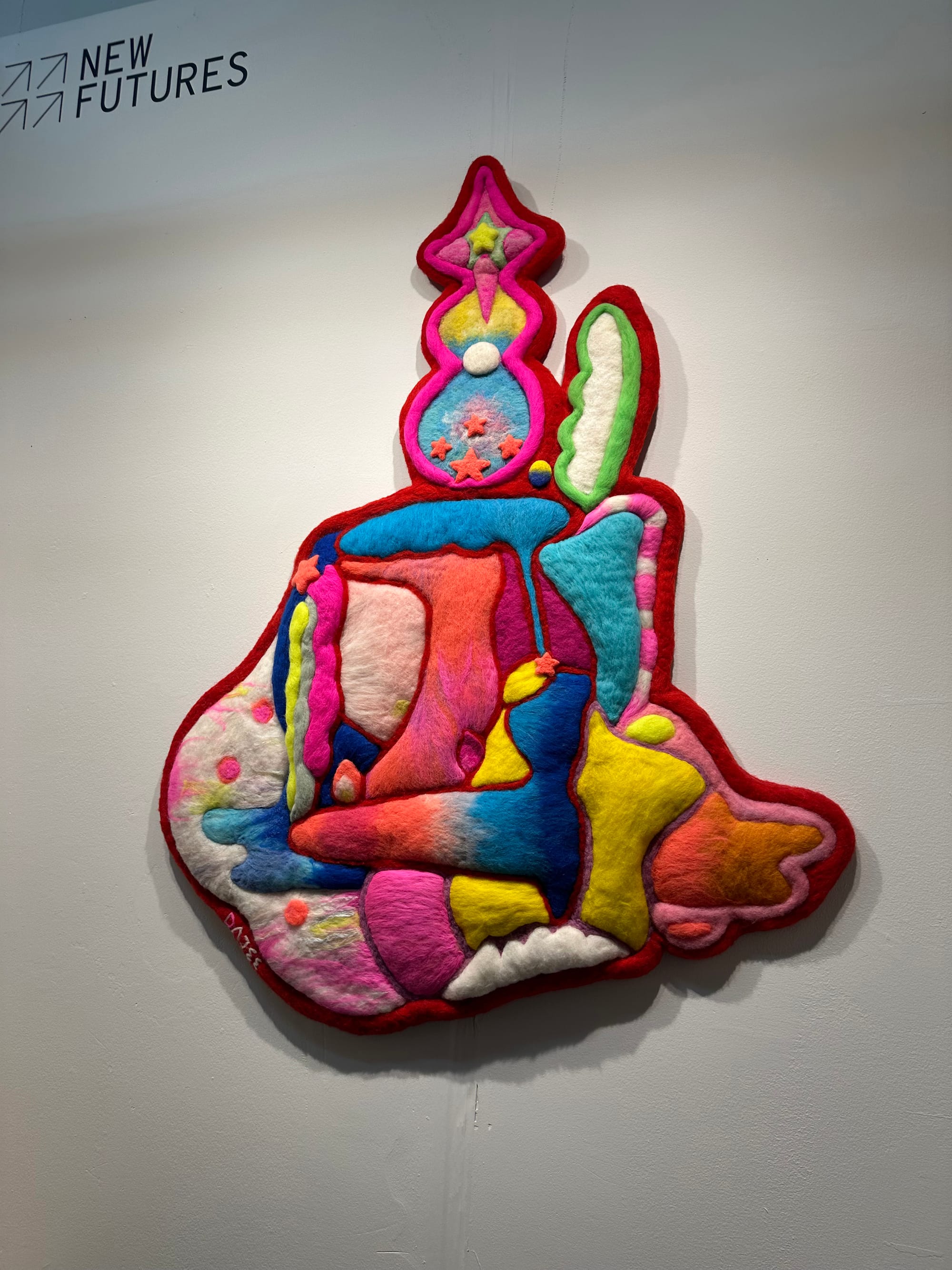 Meanwhile, Davina Hsu, a recent MFA graduate of the School of Visual Arts, described her sculptural felt works as “talismans bringing blessings.” In what is perhaps the best metaphor for artmaking I’ve ever heard, she likened the assemblage process to making a pizza. And just as the pizza form offers a universe of possibilities, so too does the Other Art Fair.