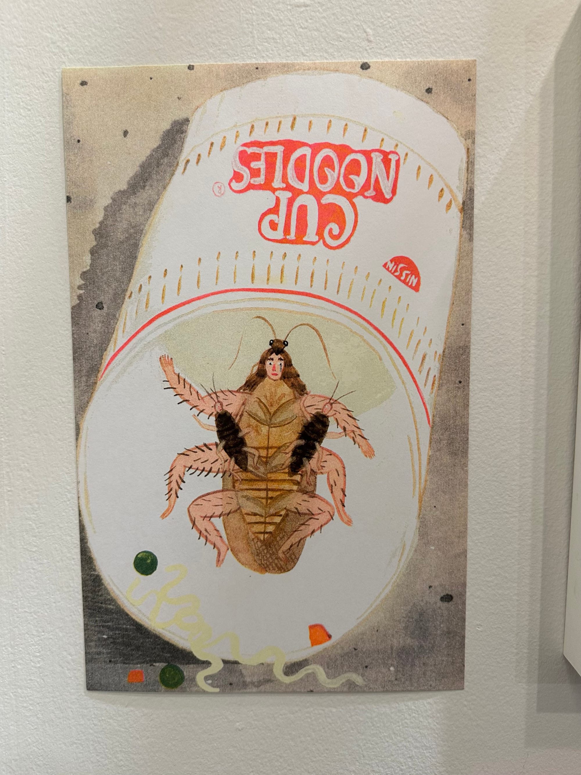 A similar sensibility shines through in the dreamy works of Colombian artist Herikita, originally from Cali. Her imaginative illustrations, depicting a cockroach-human figure trapped under an instant noodle cup and a chiva driving along a road filled with multicolored snakes, feel like maps of her brain. “I used to be that child that was just painting the whole time,” she recalled. “I was so quiet. And I was trying to record everything in my mind.”