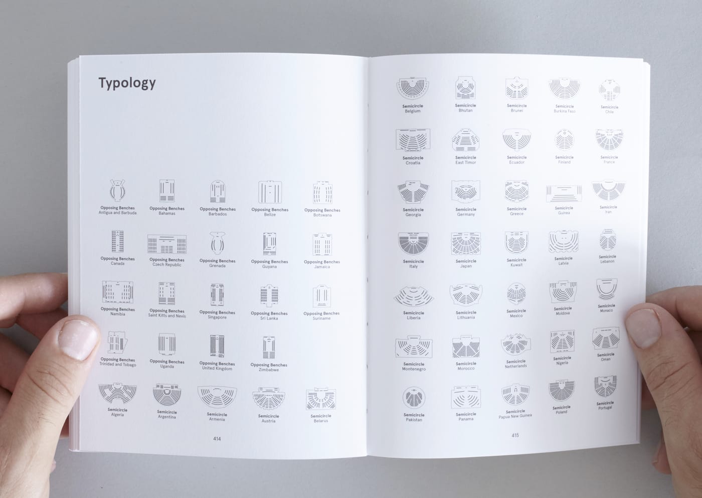 “The book reveals a systemic lack of innovation in the architecture of spaces of political congregation,” XML’s partners told Hyperallergic. “Most of today’s parliaments were created in the 19th century and have hardly changed ever since. At a time in which democracy is under pressure in many parts of the world, we hope the book helps to rethink the architecture of assembly.”