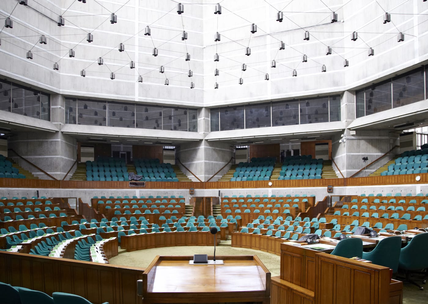 XML also traveled to some of these meeting halls to create a more immersive counterpart to Parliament. Visiting 15 spaces, including parliament chambers in Japan, Botswana, Brazil, and Germany, they photographed the interiors to create a series of 360˚ panoramas. All of them are online, allowing you to explore a specific hall and observe it from different positions of power. Some of the buildings are Modernist masterpieces, such as the Bangladesh’s Jatiyo Shangshad, designed by Louis Kahn; Brazil’s Câmara dos Deputados, designed by Oscar Niemeyer; and India’s Punjab Vidhan Sabha, designed by Le Corbusier.