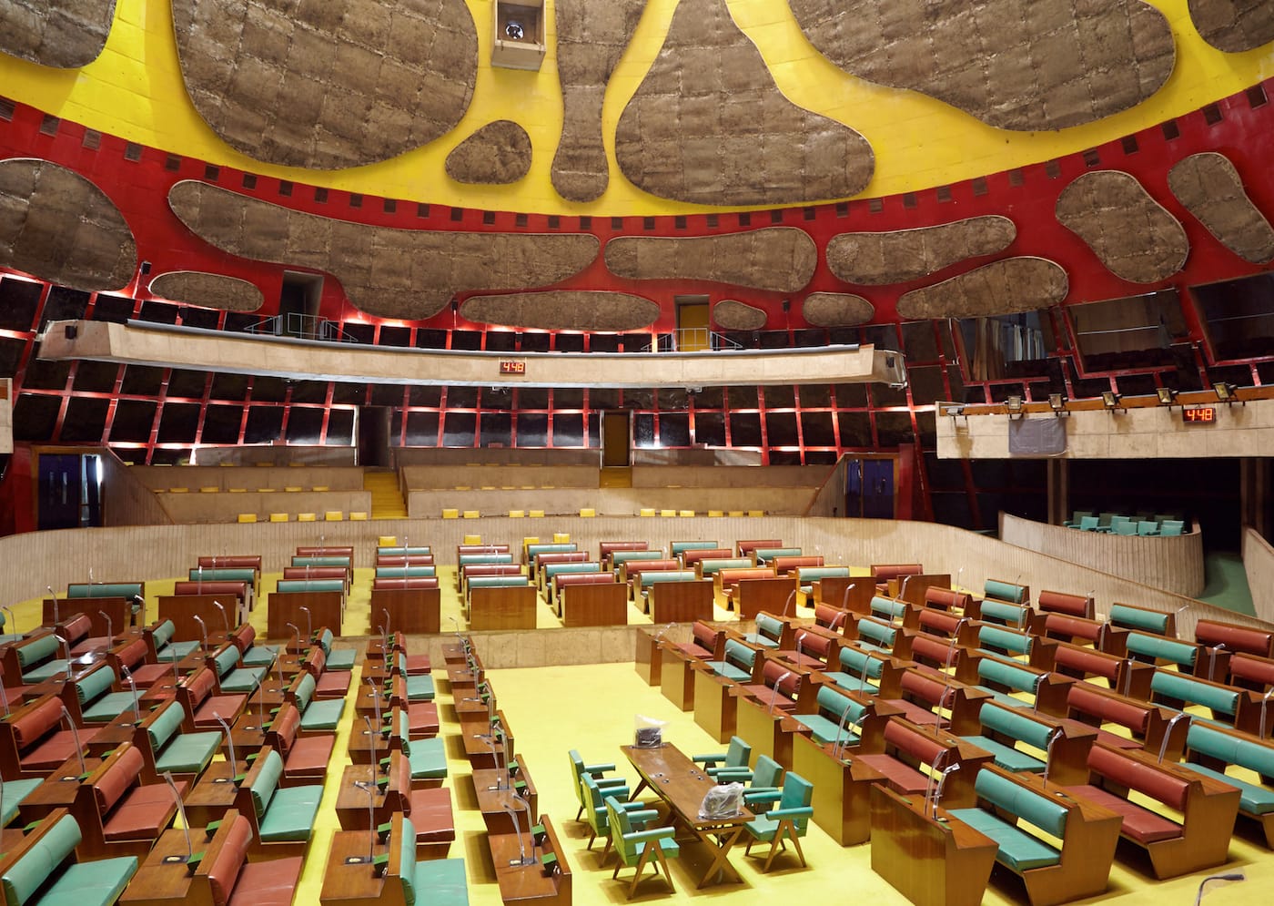Does the architecture of a nation’s parliament building help shape its politics? According to the architecture firm XML, the structure of spaces of assembly wields some influence over the exchange of ideas and, consequently, the room’s collective decision-making. Since 2010, the pair behind the Amsterdam-based company, Max Cohen de Lara and David Mulder van der Vegt, has been researching the layouts of the plenary halls of the parliaments of all 193 member states of the United Nations and comparing how their seating charts align with their government types.