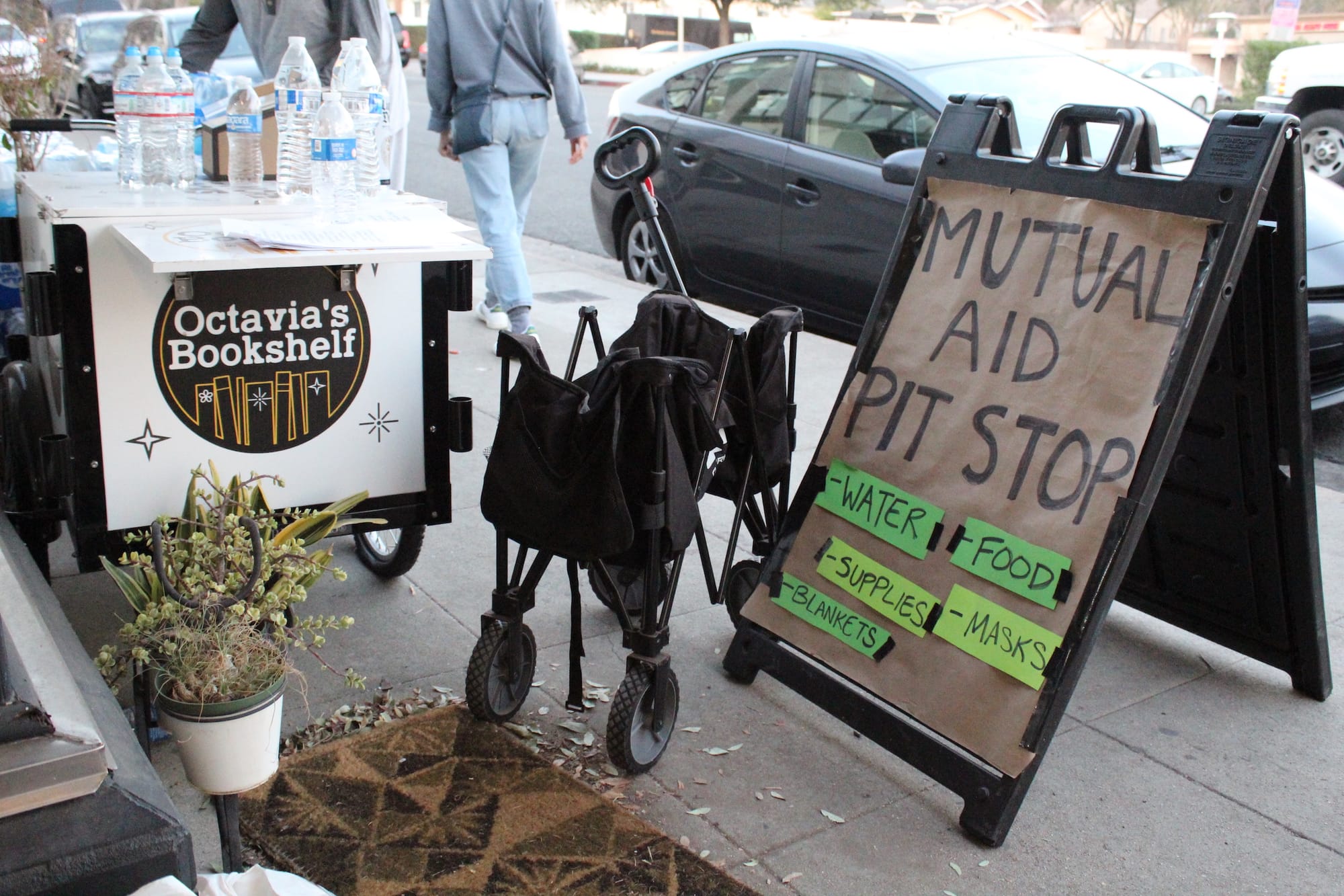 The no-questions-asked approach was evident on a recent afternoon visit on January 10. Water bottles were available for anyone who came by, air purifiers were delivered to elders, and gift cards were handed out to impacted community members. Donations can be made and volunteers can sign up on Octavia’s Bookshelf’s Instagram.