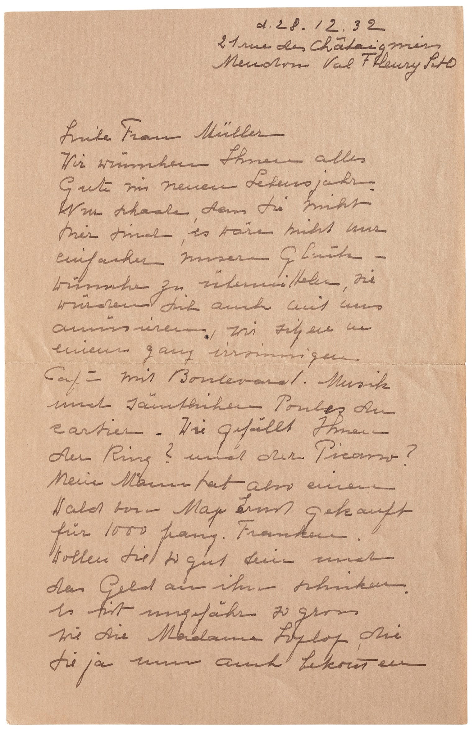 On the flip side, the Arps could help the Müller-Widmanns gain entrée to the art circles in which the Arps traveled. The Arps bought artworks from their friends on behalf of the Müller-Widmanns, and arranged studio visits when the latter couple visited Paris.