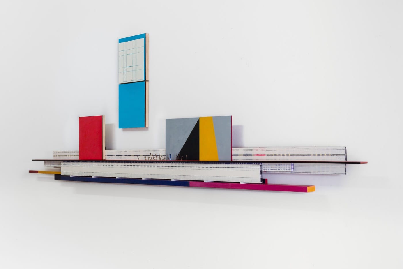 Each of Biggers’s constructions was a conglomeration of familiar textiles, a dense medley of layered significations about domesticity. Also, as part of the special grouping of Platform artists at the Armory Fair, Sarah Cain, Jeffrey Gibson, and Amalia Pica each offered some dimension of color, patterning, decoration, appropriation, and palimpsest to their imagery.