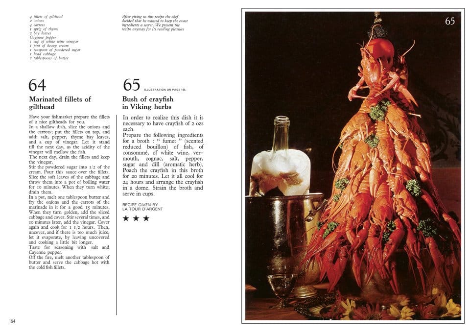 Appetite whetted, I tied on my lobster-telephone bib and tucked into Taschen’s new reprint of the maestro’s 1973 cookbook, Dalí: Les Dîners de Gala, a mammoth tome whose lustrous gold cover hints at decadence to come. This, after all, was the man who salivated in The Secret Life over a 16th-century recipe “for cooking turkey without killing it, so as to achieve that supreme refinement: to make it possible to eat it cooked and living.”