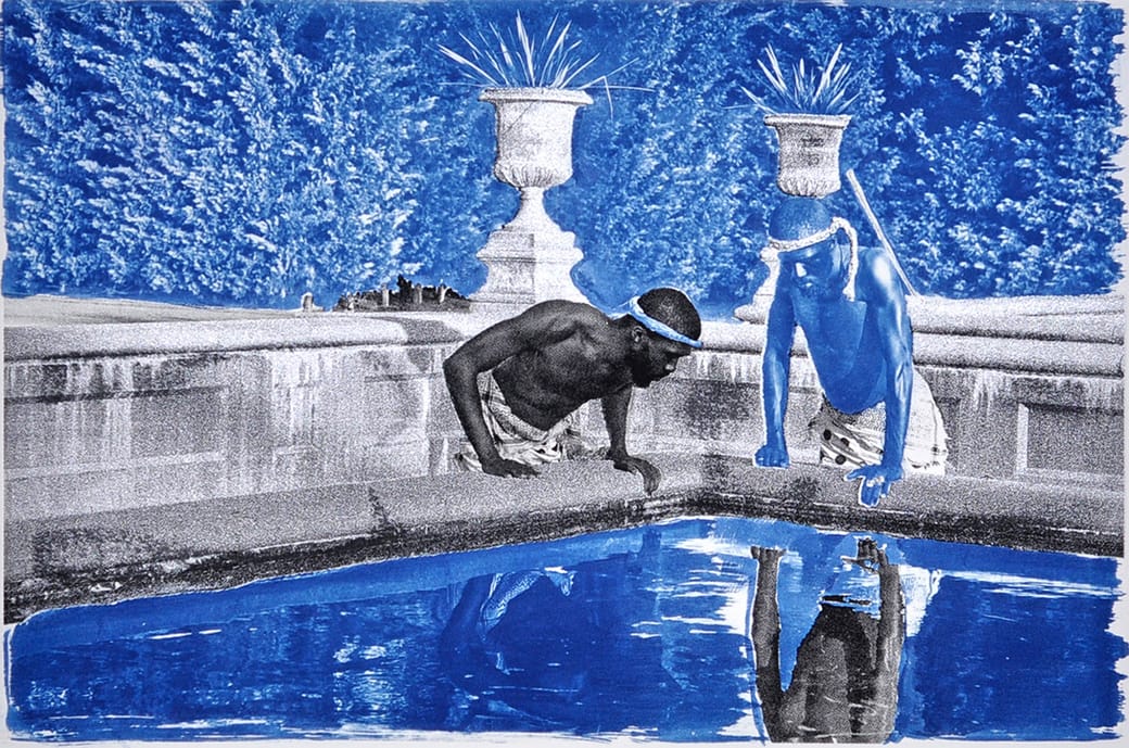 In extreme contrast, many artists employ surprisingly old-fashioned techniques to reinterpret historic events and stories of the near and distant past. At De Soto Gallery, Ivan Forde, in a set of large-scale cyanotypes that look more like paintings or prints than photographs, brings mythology, colonization, and self-portraiture simultaneously to life. Born in Georgetown, Guyana in 1990, Forde uses family folklore to recast himself into post-emancipation narratives, or poetic tales like the Epic of Gilgamesh to explore contemporary issues of diversity and representation.