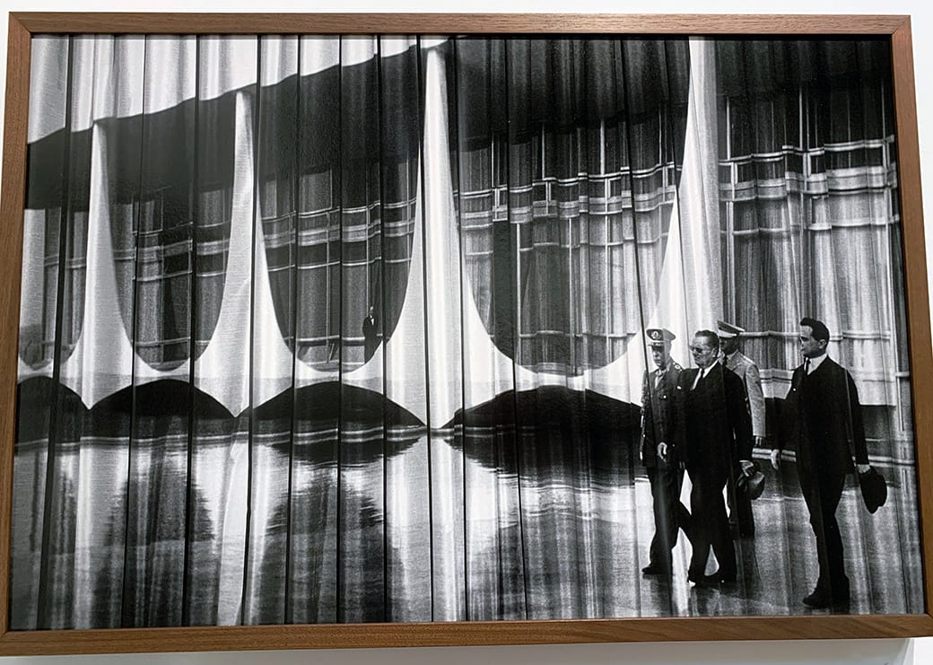 Vesna Pavlović turns to the post-war history of her native Yugoslavia, recontextualizing black-and-white archival imagery in her series Fabrics of Socialism. She projects the slides onto rippling curtains, distorting images of powerful men in uniform and intimidating armaments.