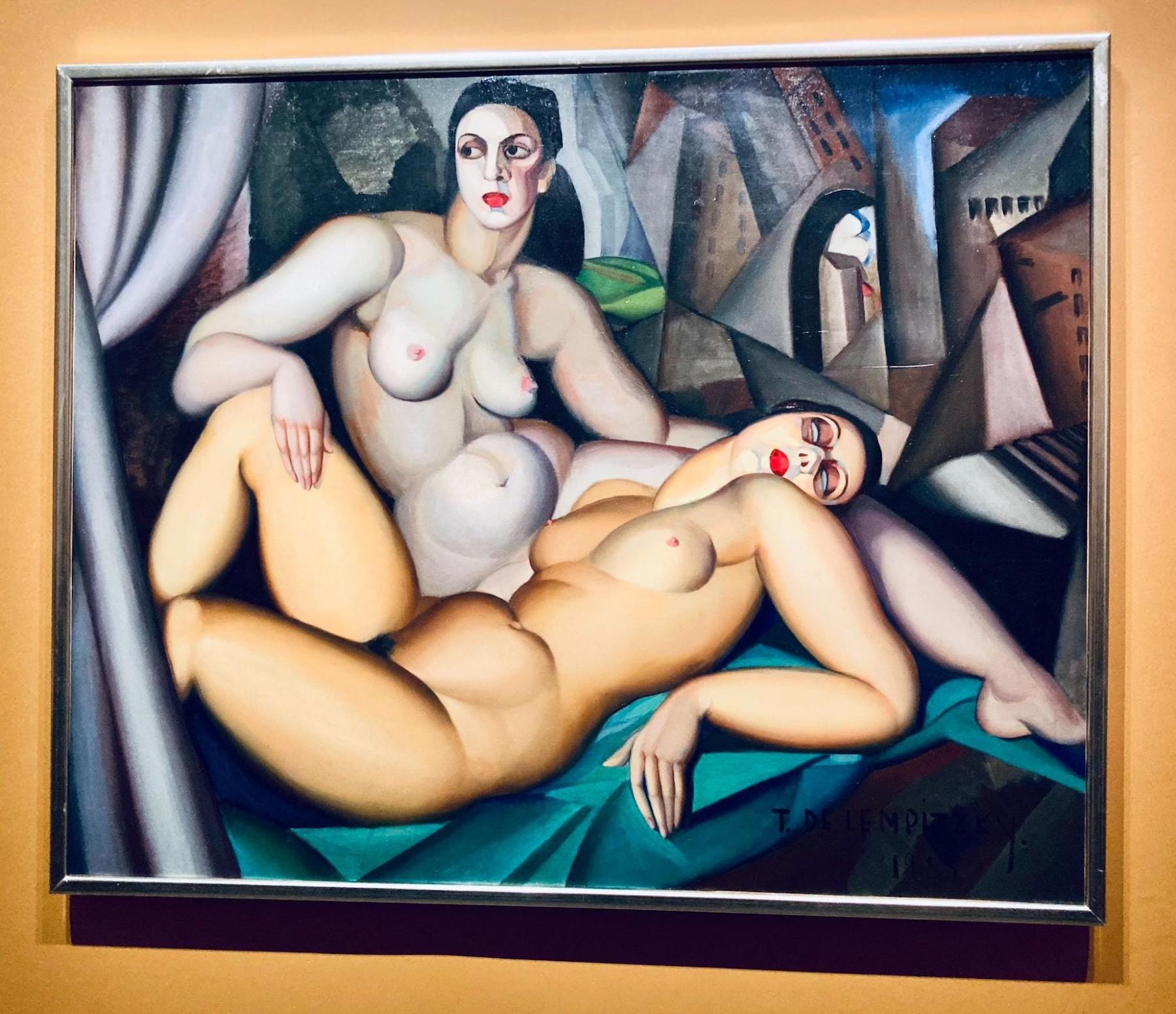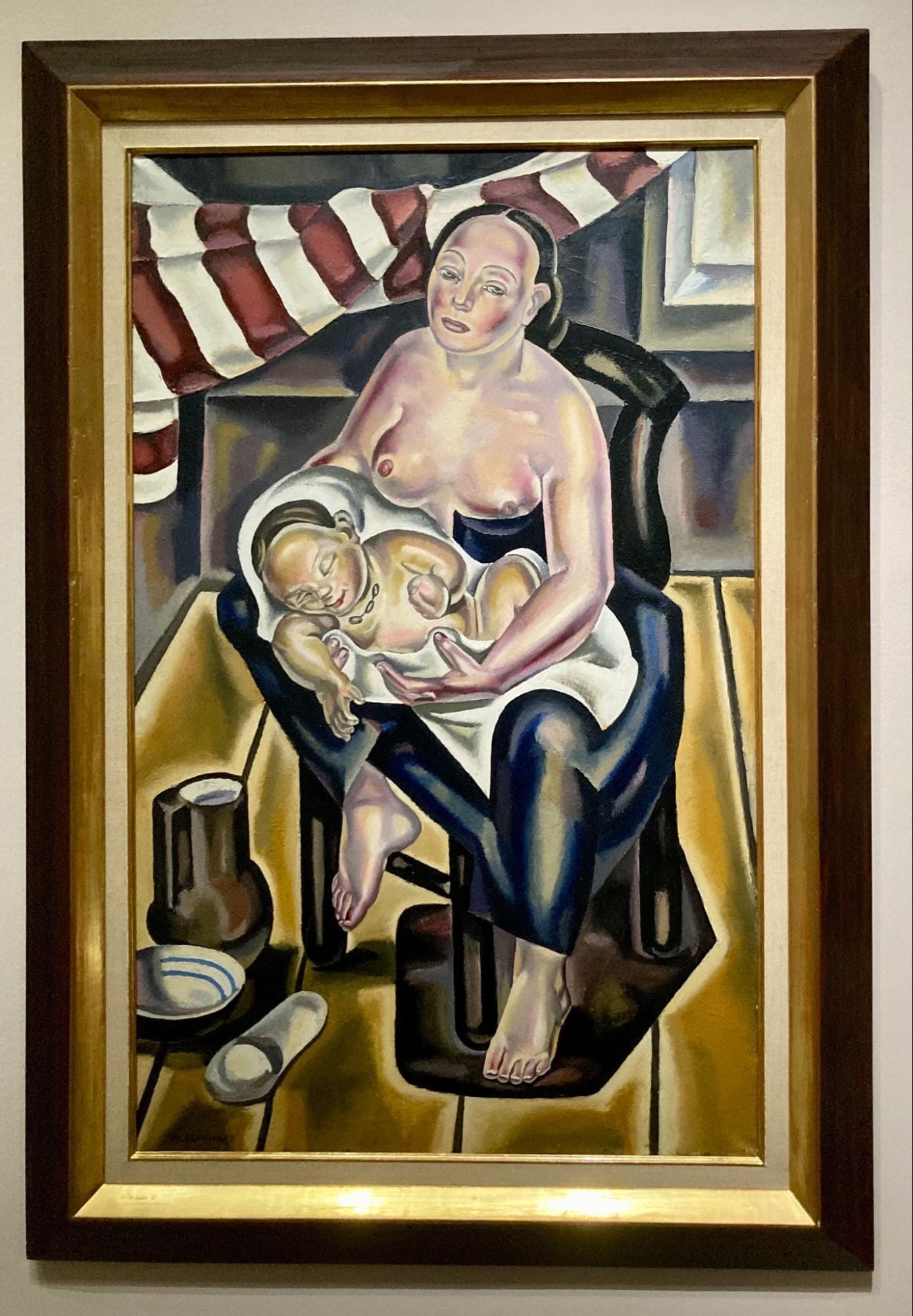But Morineau is more interested in how contemporary identity politics are embedded in women’s artistic production from a century ago. These concerns materialize throughout a series of rooms in which the female body is disrobed, portrayed through multiple lenses (motherhood, female friendship, aging, sapphic desire), and re-clothed in a way that queers gender identity and presentation. The self-taught Suzanne Valadon’s 1923 oil painting “La Chambre Bleue,” of a woman lounging in striped pajamas, challenges similarly composed, eroticizing images by her male contemporaries. Chana Orloff’s bronze sculpture “Maternité couchée,” from the same year, is an aesthetic exploration of the intimate yet unglamorous act of breastfeeding.