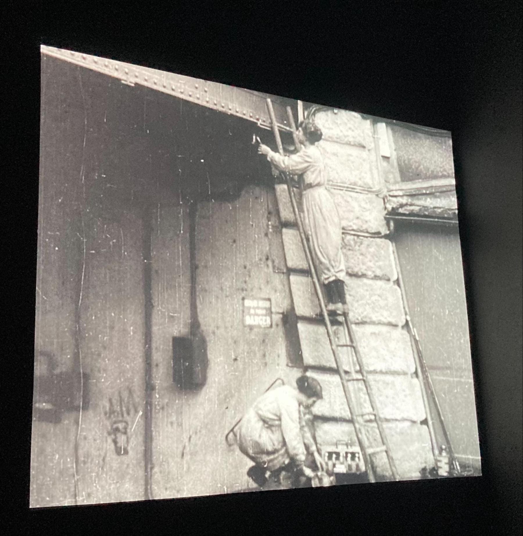 The exhibition's first images come from World War I-era archival footage. “In France too, women replaced men in traditional occupations,” we read before seeing a short silent film of women operating factory machines, conducting public transportation, and maintaining rooftop heating systems. Throughout the following seven rooms Morineau continues to emphasize economic and social evolution as foundational to, and intertwined with, female artistic exploration.
