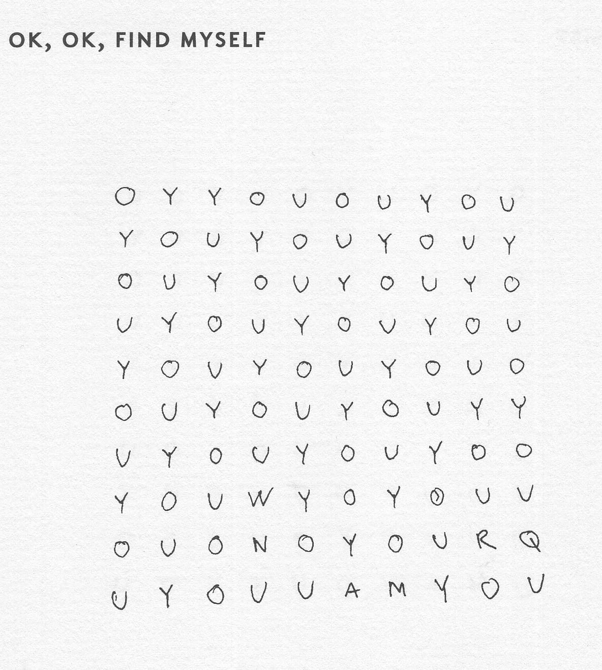 POP tends toward hopelessness. (One poem is a word search with a title that asks the reader to “find hope” — spoiler, it isn’t in there!) Banu’s poems don’t rush to comfort, but rather to give voice to the disillusion of love’s ending, through a cumulative effect. Individually, they read like everyday phrases, but line after line, and poem after poem, they accrue more weight. “It’s important to remove your clown makeup after destroying the life you thought you were building together,” she writes in one of the final poems. “Good grease makeup remover can keep your skin healthy and clear during periods of crying in your cubicle as you leave voicemail reminder for Toyota service appointments."