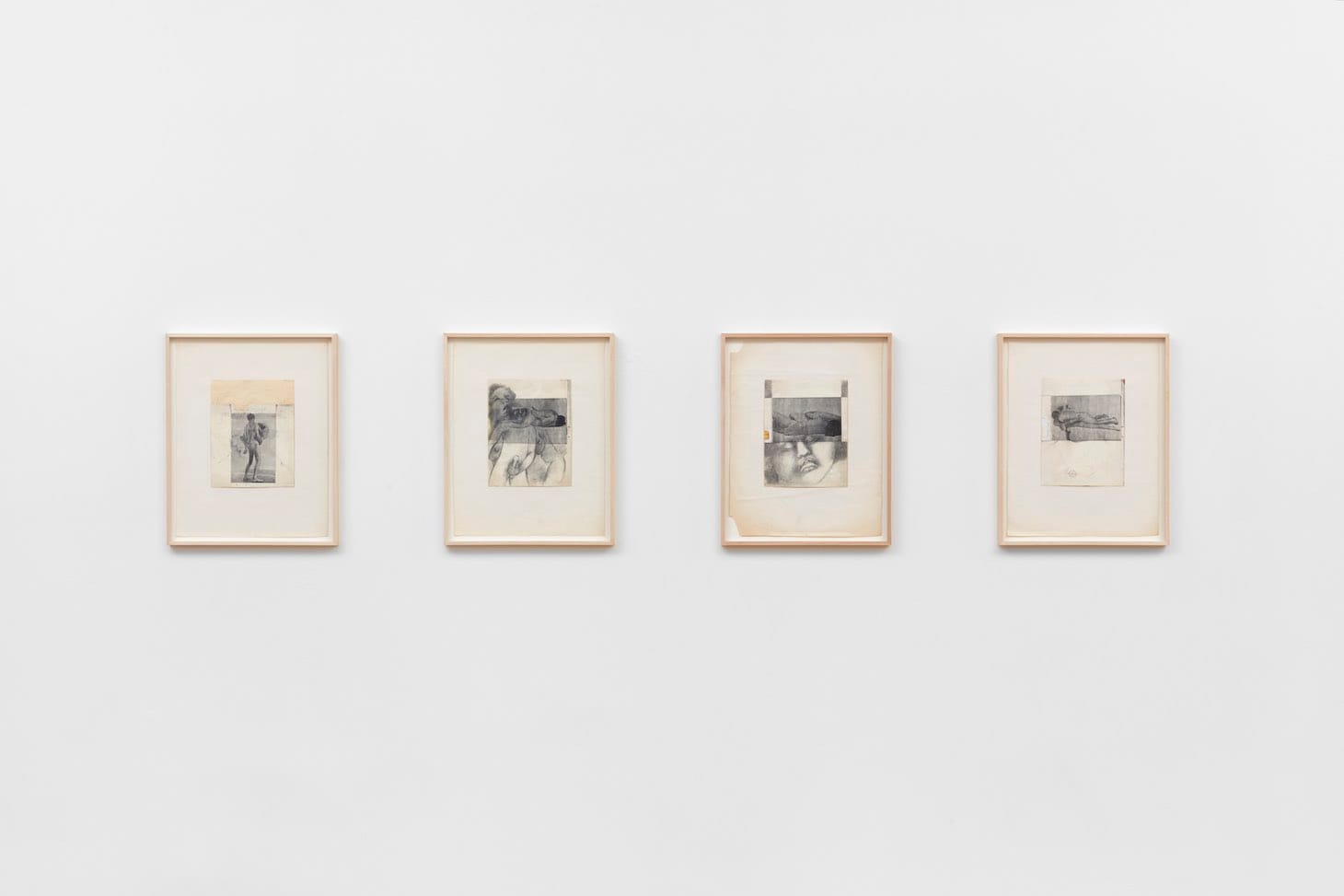 Two series of small works that combine photocopies and drawing make clear the messy reality of this conflict. In the Erotica Drawing Series (c. 1977), graphite drawings, mainly of male and female faces, overlay Xeroxed photos of heterosexual couples having sex. The antiseptic photos, which could have come from an illustrated manual on sex positions, belie the warm intimacy of the drawings.