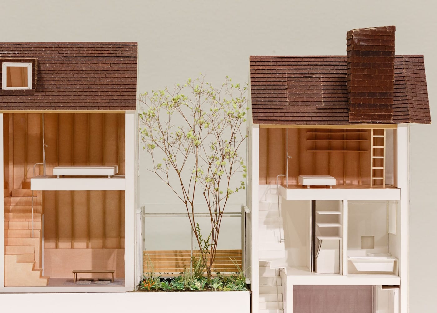 The Barbican answers this question in a clever way, utilizing its own unique Brutalist interior to maximize both experience and explanation. The exhibition spans two levels: an open-plan ground floor topped off by a rectangular, balcony-like gallery space. Upon entering, visitors are sent directly upstairs, getting a bird’s-eye view of Ryue Nishizawa’s Moriyama House (Tokyo, 2005) recreated in its entirety. But to fully appreciate the urban context out of which Nishizawa’s design grew, a visit to the upstairs galleries is not only necessary, but incredibly illuminating.