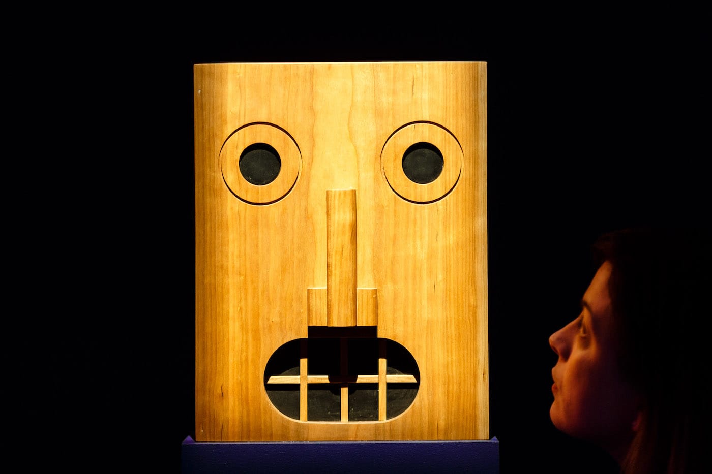 Through photography and models, the suffocation of city living is played out in all sorts of shapes and sizes. Takamitsu Azuma’s Tower House (Tokyo, 1966) is a concrete reaction to the new verticality of Tokyo, a space in which his family lived stacked around a central spiral staircase on a small triangular plot of land. Toyo Ito (a student of Shinohara’s) planned White U (Tokyo, 1976) — a restrictive u-shaped home, with no exterior windows — as a retreat for his sister. In a counter to the serious limits placed on modern Japanese architects, a polished wooden model of Kazumasa Yamashita’s playful Face House (Kyoto, 1974) looks back at viewers, windows making up its facial façade.