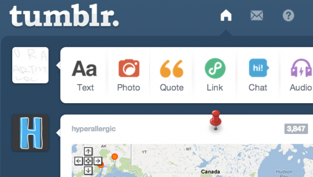 The idea of everyone being his own journalist demands a new type of digestion of content. We cannot place equal value on every tweet, just as most of us never confuse tabloids with the New York Times. Yet as we are constantly updated with a flood of new information, new modes for filtering, deciphering, and reading have emerged. Despite many users finding their news by visiting news sites directly, the number of users getting their news from Facebook and Twitter is on the rise. Tumblr and Facebook are increasingly experienced solely through a user’s dashboard (my Tumblr dashboard above), compiling all of the followed users’ new content chronologically into one place. Creating an environment of many voices right next to one another wears aways at previous structures of value placement that came with “legitimate” news sources. What that means is debatable: quantity and diversity of information has exponentially risen, while trust in that information and sustained attention has fallen.