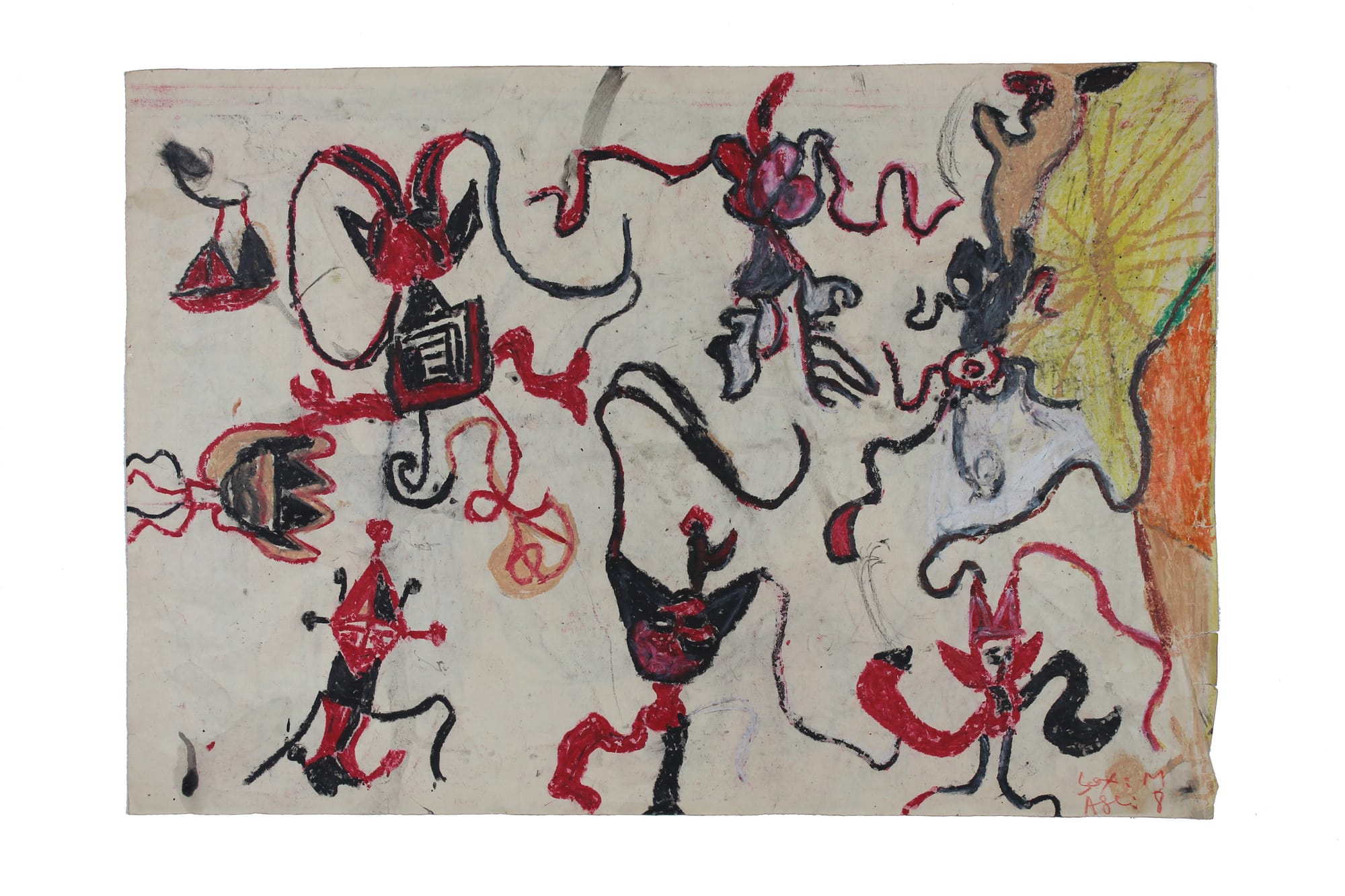 NR: This is Dubuffet again, but also Pollock, using the wrong end of the paintbrush, using their fingers. Have you ever thought about using these scribbles and forms and patterns as a kind of repository of mark-making in your own work?