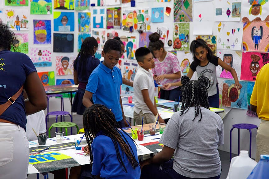 BB: The morning after the show opened, we started hosting classes, and they began with marker and crayon. Sam Moyer and Eddie Martinez were the artists standing in on that. And then from there it went to collages – I hosted those classes. Then it went to tempera painting and self-portraiture, then to printmaking, and now in the last week, we’re talking about doing a mural with a school, and we’re also talking about doing a puppetry workshop. The kids are surrounded by their own art, not by the unattainable Michelangelo or da Vinci or Rembrandt or Escher – the stuff a kid sees and thinks, “I’ll never get there.”