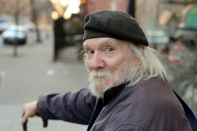 The photographer has a similar relationship to his audience, whom he keeps in touch with from another distance, mainly through Facebook. Throughout our interview, Stanton — an unruffled workaholic — is casually monitoring the “likes” on a photo he’s just posted to Facebook. The photograph, which shows an old, bearded man sitting on a stoop, is unexceptional, but the caption with it — “Do you mind if I take your photo?” / “…” / “I run a website called … ” / “Don’t give me that shit line. Just take the picture.” — lends it a humanity and wry humor. As Stanton readily admits, the man in the photo is “an interesting guy, but as far as photographic technique or artistry, there’s not anything that compelling about it. Yet it’s got … ” — he scrolls to the top of the page to check his notifications — “3,000 likes in ten minutes.” Stories and “likes” matter to Stanton; the words not only make the pictures, but also generate the online engagement he craves.