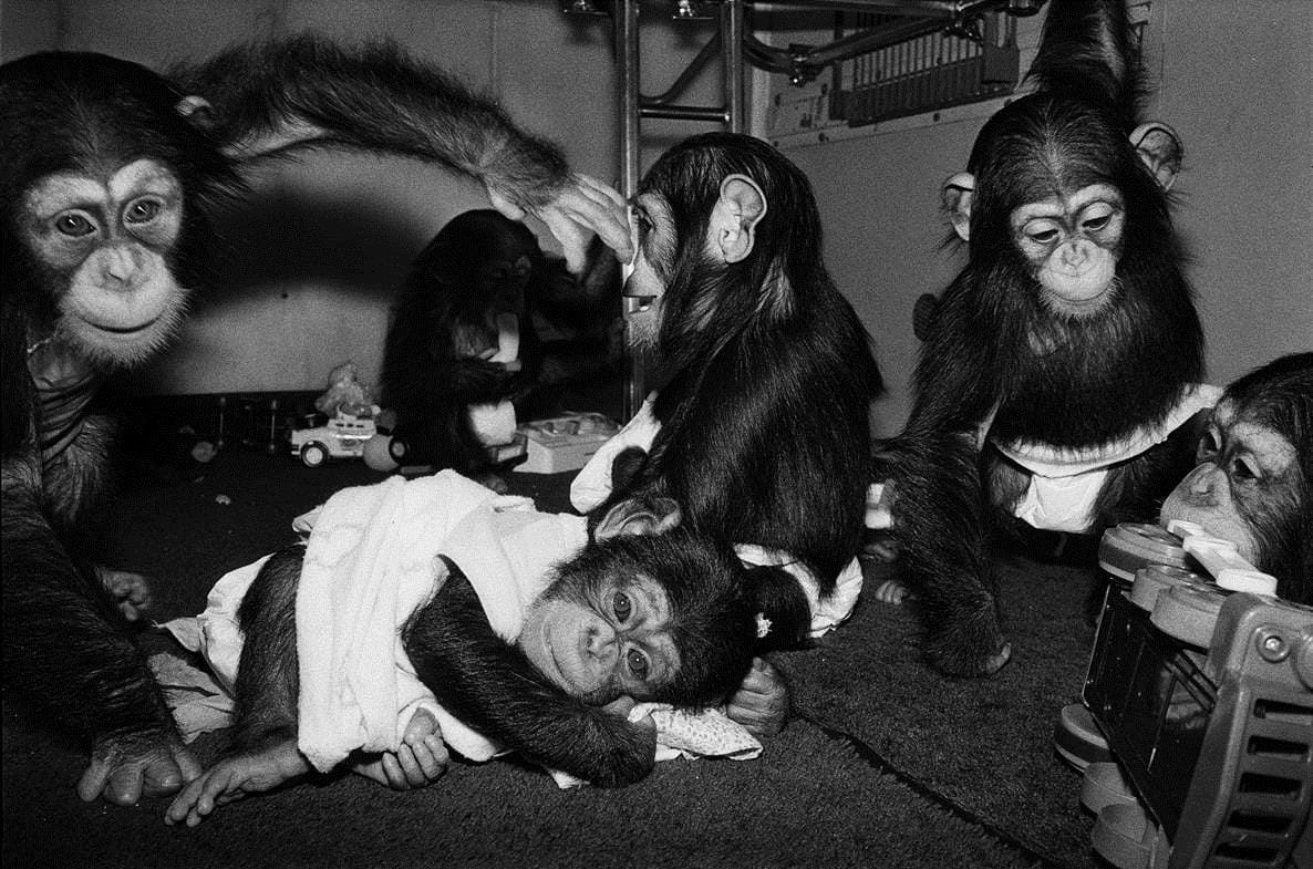 Robin Schwartz, “Josh, Hermonie, Alexis, Rene and Ewok” (1988), Chimpanzees, all under 1 year old