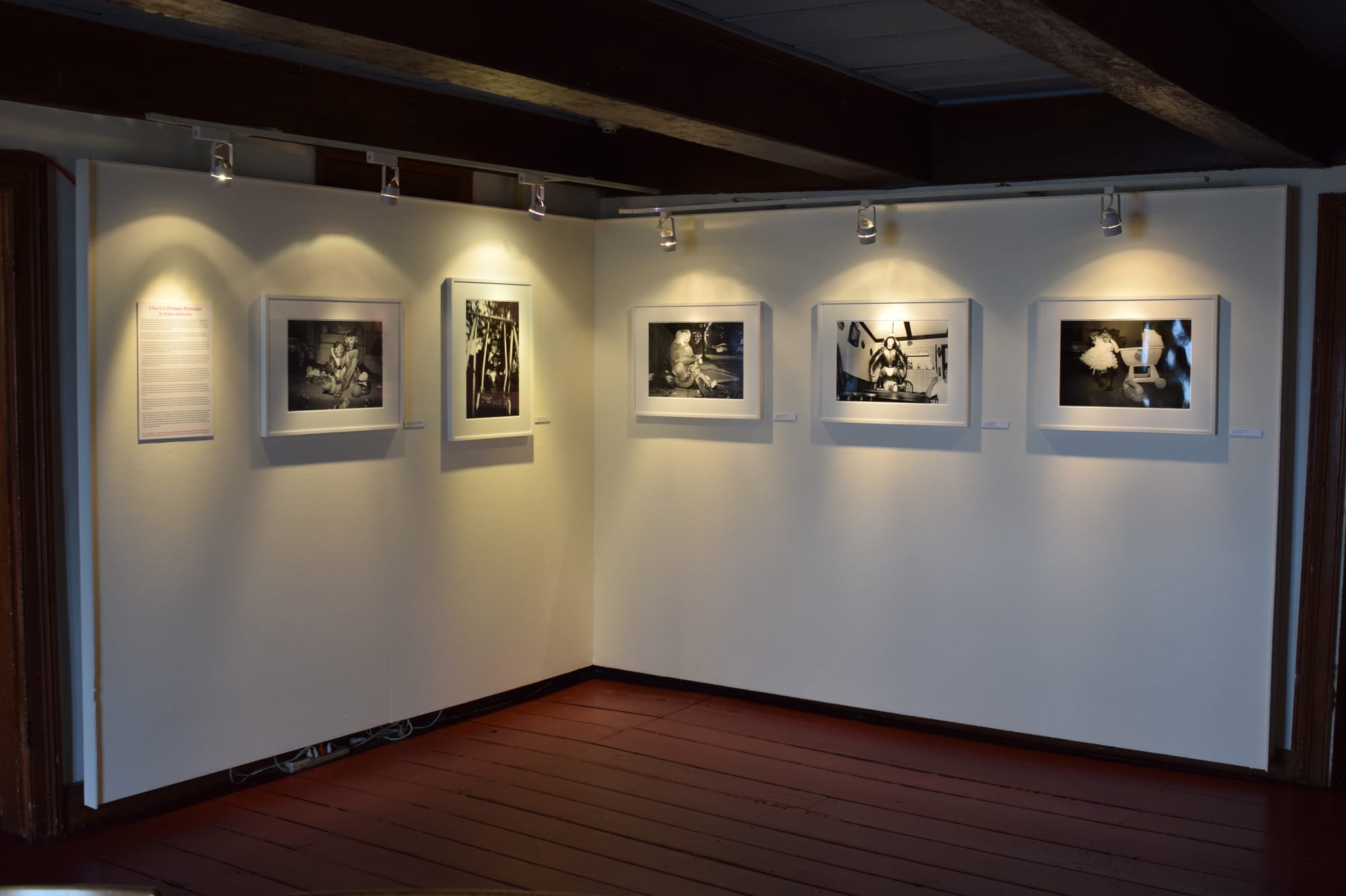 Installation view of Like Us: Primate Portraits by Robin Schwartz at the Alice Austen House (photo courtesy the Alice Austen House)