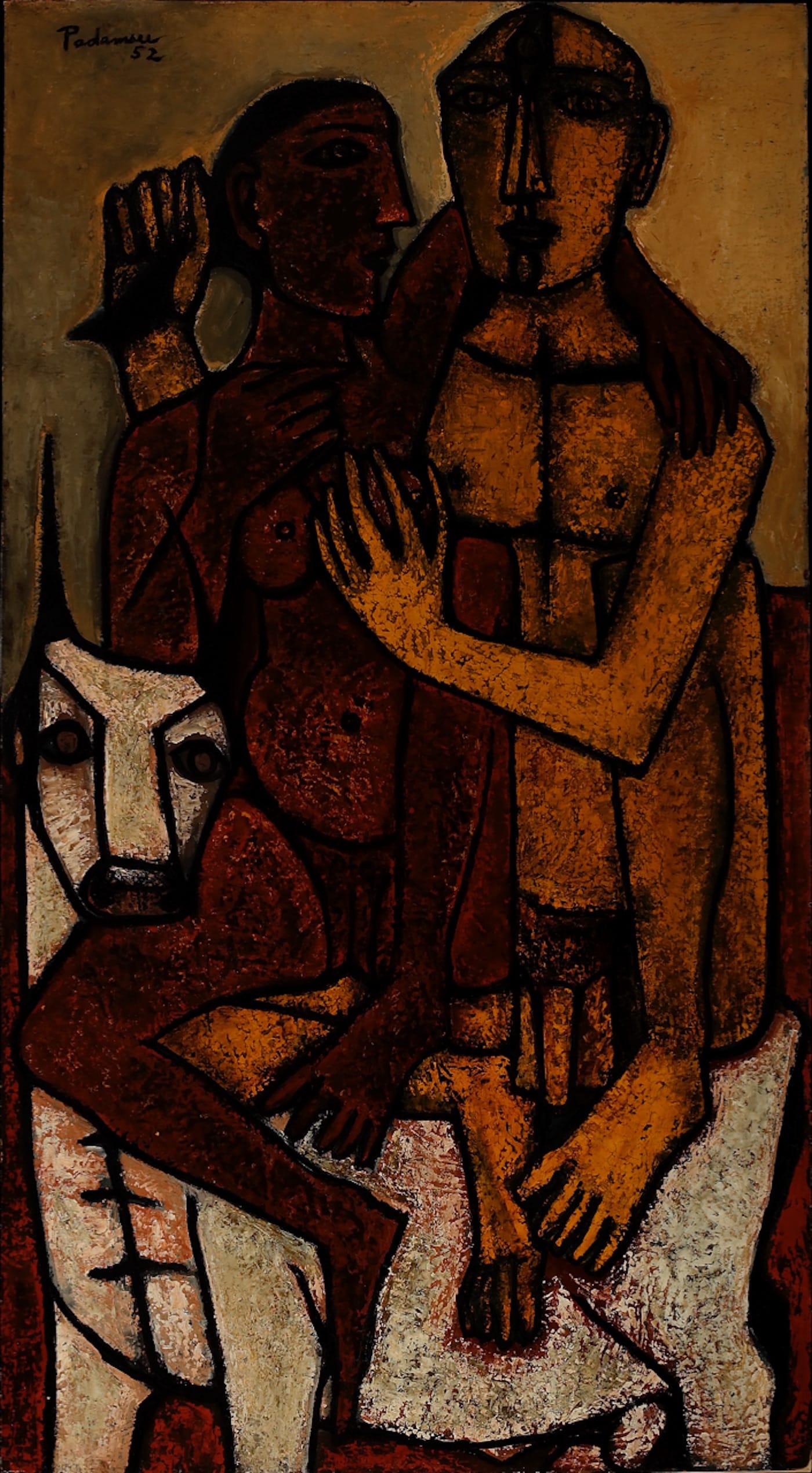 Husain could only get away with his painting because of the precedent set by a landmark court case involving Akbar Padamsee’s “Lovers” (1952), which alluded to the divine couple of Lord Shiva and Goddess Parvati (also known as Uma Maheshvara). Inspired by Hindu iconography, Padamsee places the man’s hand on the woman’s breast. This move attracted the ire of India’s conservative establishment, which motivated authorities to charge the artist with obscenity. Padamsee refused to remove the painting, choosing instead to fight for his right for freedom of expression in court. Interestingly enough, the verdict absolving Padamsee reasoned that his scandalous imagery was acceptable because it appropriated the Cubist style from the West; after all, anything goes in European art.