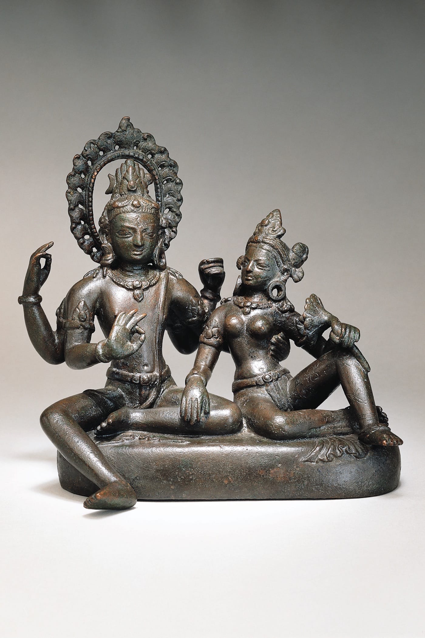 In the show’s final section, called “Masters of the Game,” Progressive Revolution argues that India’s artists borrowed from a range of traditional folk- and high-art styles to create their own version of modernism. Even though most works in the show’s finale were created after PAG’s dissolution, they all demonstrate a united approach to upending the cultural mores of Indian society. This final section is replete with historical gems and challenging visual splendor. Erotic male and female nudes rule the gallery walls, echoing the poses of millennia-old sculptures. Take a look at “Shiva and Parvati” (from the Transitional period, late 10th to early 11th centuries) and think about M. F. Husain’s “Eternal Lovers” (1968) for a good comparison. Seen in the exhibition’s catalogue but not the exhibition, Husain’s interpretation of the godly duo as a normal couple in naked repose was a scandalous move for Indian society.