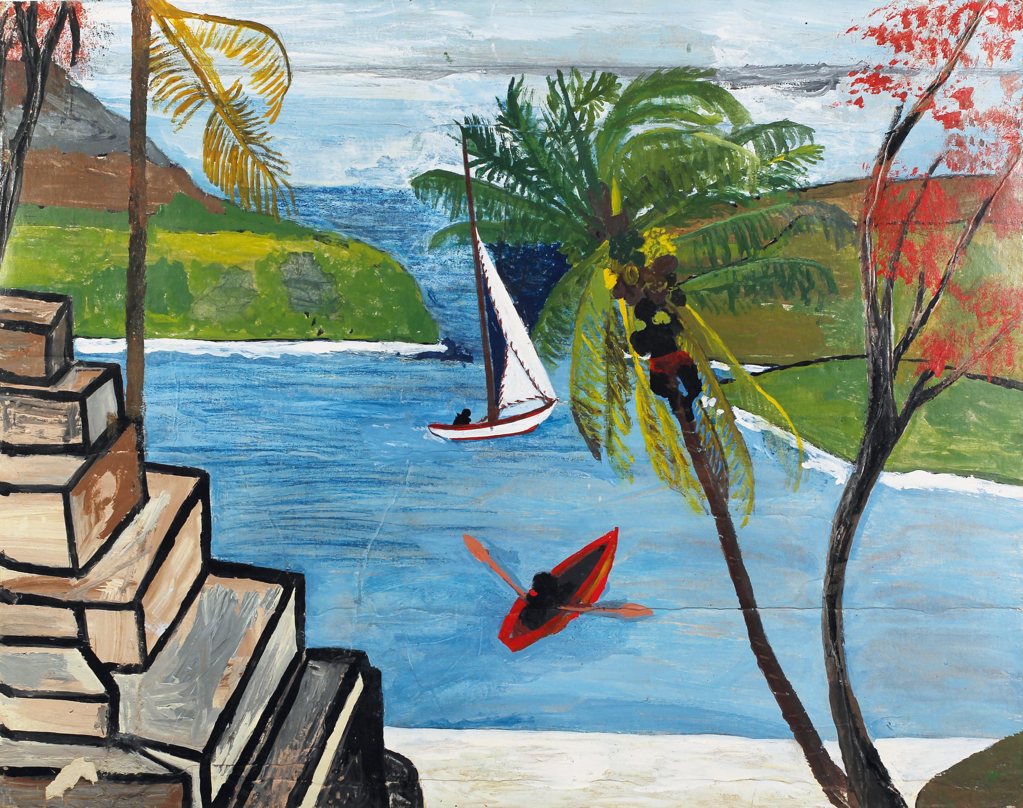 The exhibition, open through February 25, attempts to link Walter’s artwork to his wider ideas around politics and the environment. The artist’s paintings are displayed alongside objects from his studio, ephemera from his unsuccessful political campaign to become Antigua’s prime minister, and photographs of his open-air studio and garden. The artworks include self-portraits and a selection of small landscape paintings on the back of Polaroid film cartridge boxes. The exhibition attempts to contextualize Walter within his Caribbean landscape and cultural setting and challenge his characterization as an outsider artist.