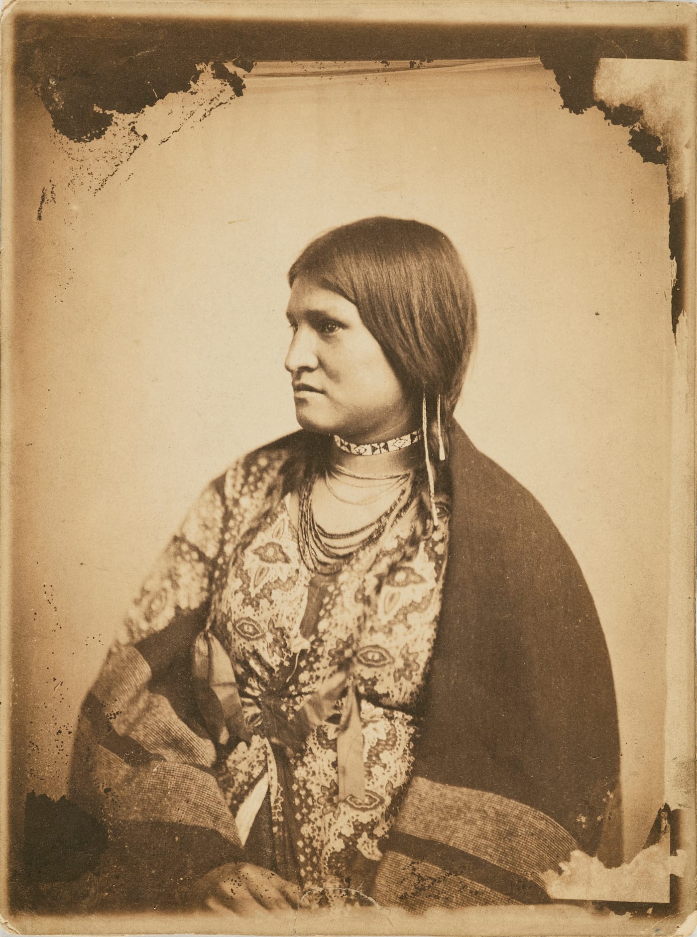 As curator Mazie Harris writes in the show’s thoroughly researched and lavishly illustrated catalogue, paper photography, which Americans adopted more slowly and reluctantly than Europeans, eventually gained dominance partly because it was an important means of “sharing ideas about the nation and its people.” Taking this to heart, the show does an excellent job of capturing the racial, ethnic, gender, and class diversity of the nation, taking pains not to fill the rooms with images of only wealthy and white sitters associated with the best-known American photographers of the time, such as the Boston daguerreotypists Southworth and Hawes.