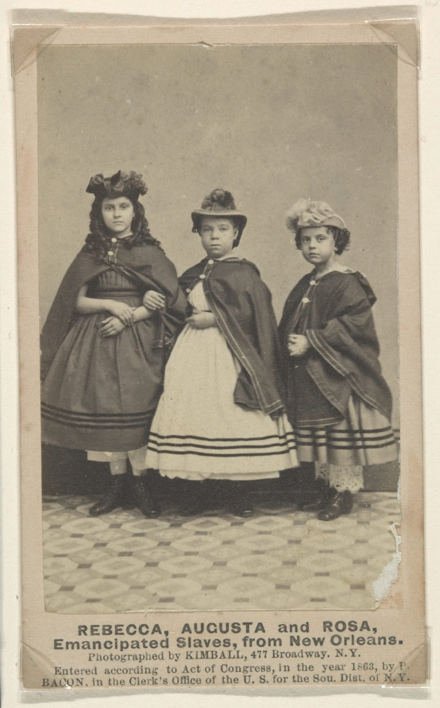 White photographers also documented slavery in the South, competing through their images for the soul of the nation. James Osborn and Frederick Durbec’s 1860 photographs made near Charleston, South Carolina present an anodyne picture of plantation life with faceless slaves doing chores in the middle ground, while Alexander Gardner and James Gibson’s 1862 “Contrabands on Mr. Toller’s Farm” shows a resolute group of men, women, and children who sought protection from slavery in Union-controlled territory. The images that perhaps most poignantly capture white America’s feelings about race, which remain unresolved to this day, are Charles Paxson’s and M.H. Kimball’s carte-de-visites of children who traveled as emancipated slaves on the abolitionist circuit during the Civil War. Their photographs were used by organizations such as the National Freedmen’s Relief Association to help raise money for the education of freed slaves and rouse enthusiasm for the war effort. What is remarkable about the photographs is that the children shown could all have easily “passed” for white. An illustration of the cruelty of the one-drop rule? Certainly. Yet it also suggests that perversely, even among Northerners, getting sympathy for black people was a lot easier if they didn’t actually look black.