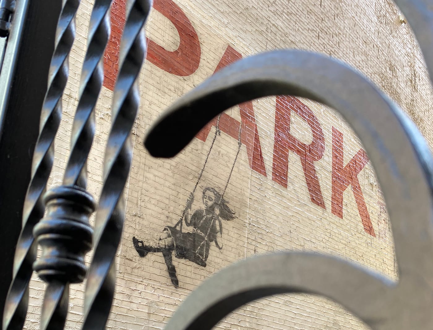 Earlier this month, it was reported that a historic building in downtown Los Angeles would be coming up for auction. Normally this story would be relegated to the real estate section, were it not for an iconic mural on one side of the building. In 2010, the famously surreptitious street artist Banksy painted an image of a girl on a swing hanging from the letter “A” in a “PARKING” sign on the building’s south face. The letters “ING” are whitewashed, leaving the word “PARK.” Dubbed “Swing Girl,” it is the British artist’s only extant public artwork in LA. The building’s owners have estimated the value of the building at $16 million, but are hoping to get at least $30 million for it when it hits the auction block in October, the added value pegged to the existence of the Banksy mural.