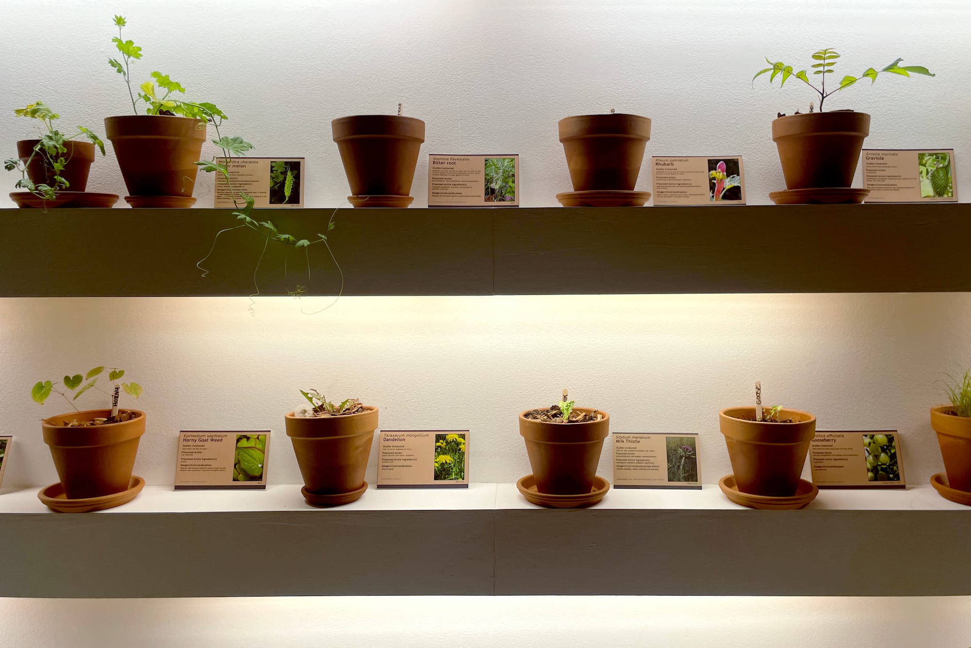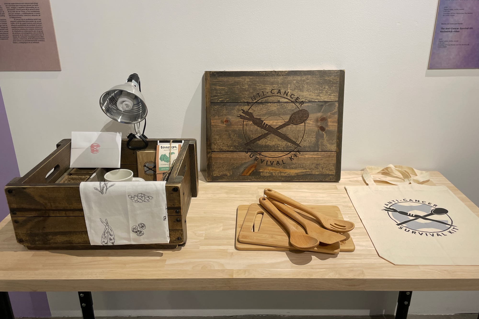 Da Costa’s “The Anti-Cancer Survival Kit” (2012–13), and her collaboration with artist Donald Daedalus, “The Life Garden” (2011), focus on medicinal plants with cancer-curing properties. “The Life Garden” displays 53 species of plants sprouting from terracotta pots and placed on shelves like library books, ready for a sick person to check out. Placards accompany each plant, detailing the scientific studies that back up ancient wisdom. Scientists have examined how an anti-inflammatory like Ashwagandha can affect the prostate, lungs, or breasts. The garden reminded me of all the natural remedies I’ve tried to cure my chronic pain: boric acid, gabapentin, probiotics, peppermint teas. Yet I found da Costa’s desire to share these plants with others, and its underlying optimism, to be alienating. My cynical self couldn’t stop thinking about how promising an anti-cancer garden was an oversell. These plants have not cured me, and they did not cure da Costa either.