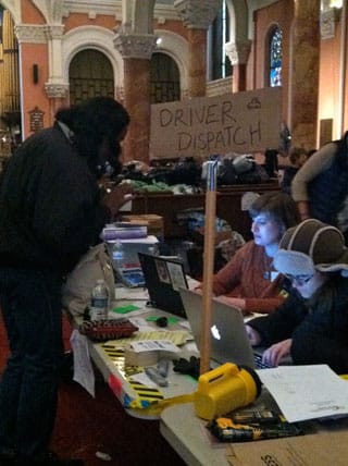 There are a number of ways in which Occupy Sandy gives meaning to this phrase, from the group’s understanding of the hurricane to its actual work helping those hurt by it. Yo Tom talked a lot about the context for the storm — environmentally, global warming, and socially, the fact that most of the New Yorkers still without power and heat 12 days later were people of color living in low-income housing. In other words, the hurricane has helped expose (or remind us of) the larger systemic problems of the city. What’s more, he stressed that the last thing Occupy volunteers wanted to do was to barge into these communities and take charge. We were going out there to bring food and donations, but also to assist local groups and leaders with the work they were already doing. This wasn’t about being white saviors (the group was mixed, but the majority was undeniably white); it was about empowering people.