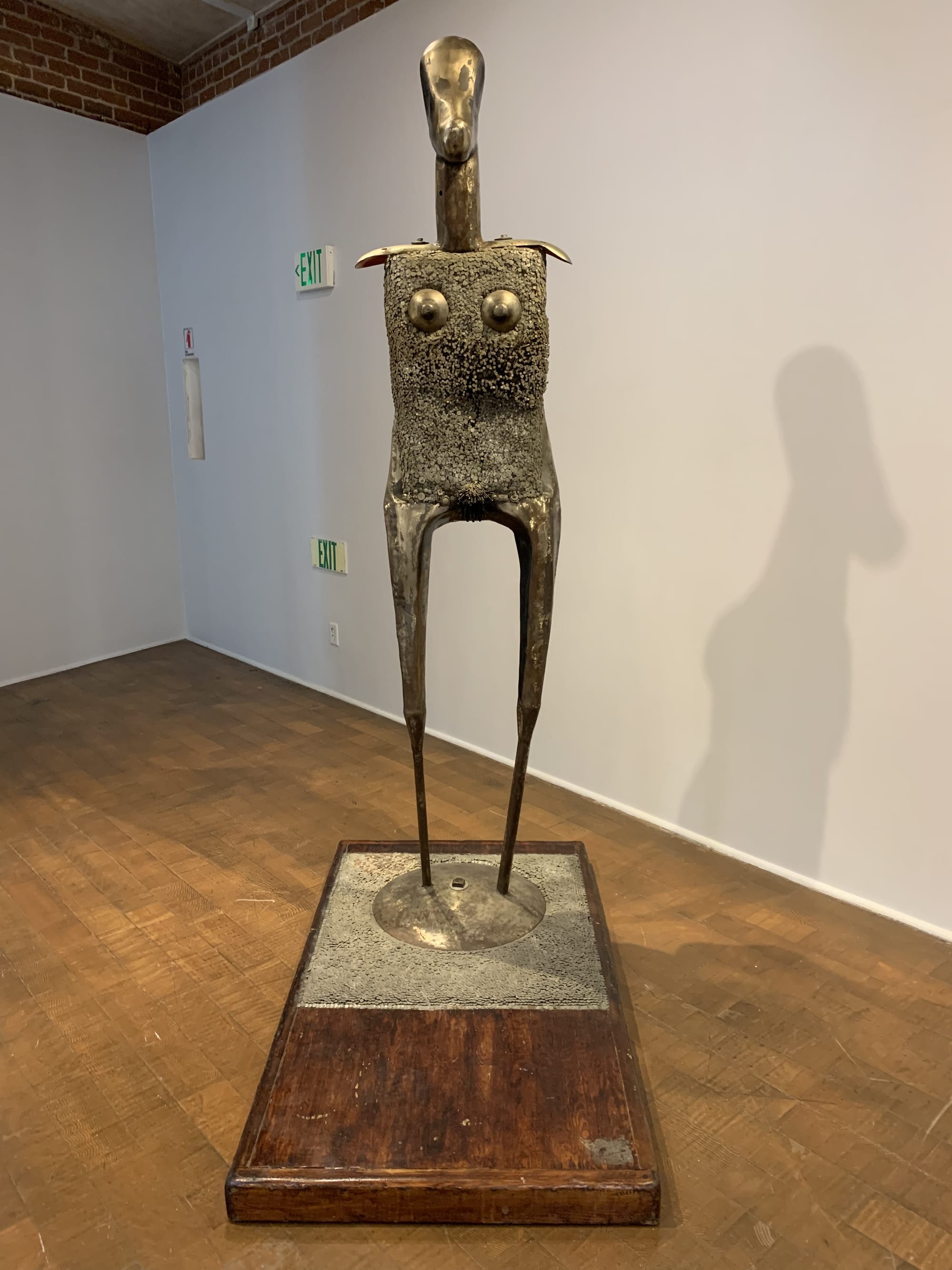 Another one of Riddle’s former students at Los Angeles High, artist Bret Price, oversaw the restoration of Riddle’s 1968–69 sculpture “Fallen Man,” also on view at the exhibit. The large-scale work represents an abstract figure falling head first with arms and legs twisted in an unnatural motion. The title and date of the piece suggest the work could be in reference to the assassinations of Martin Luther King, Jr. and Robert F. Kennedy. Today, the piece takes on another unsettling resonance — the image of a man falling from the World Trade Center during the September 11 attacks in New York City.