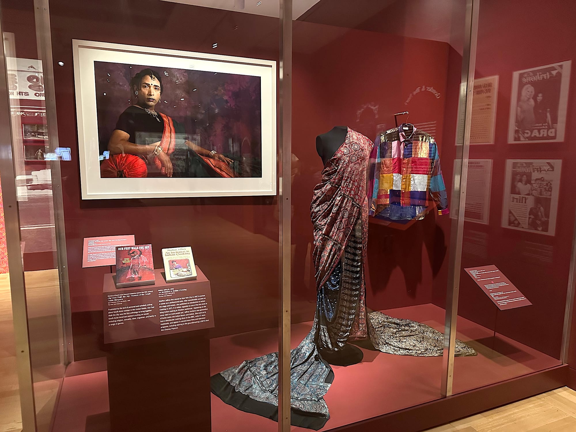With pieces by artists like Chitra Ganesh and Shradha Kochhar mingling with saris, printed ephemera, videos, and other historical materials, the result is not a static archive; it’s an unfinished weave of South Asian life in New York City. The show reminds us that the garment is a living art form, an heirloom, a document, and a political statement in one.