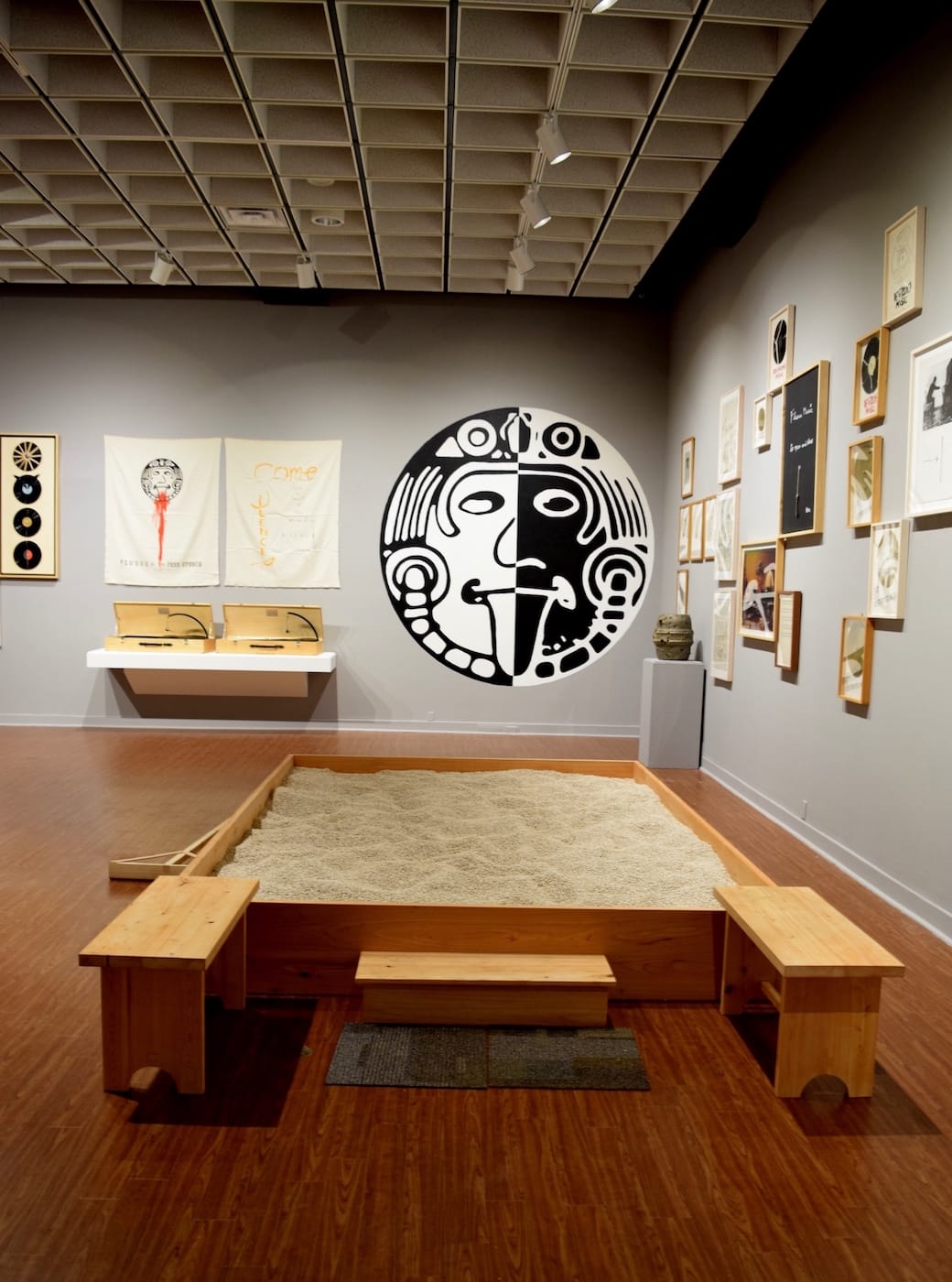 There was a sensuous immediacy to Fluxus work, to its immersion and depth. For FluZUsic/FLUXUS MUSIC, founding member Alison Knowles created a newly commissioned piece, a 10-foot wide “Bean Garden” (an item not unfamiliar to her), and demonstrated how to use it on opening night. It is, essentially, a giant Juniper-wood sandbox filled with 3,000 pounds of dry beans; guests are encouraged to sink in. The pit is soft and enveloping, thick enough to swim in; contact mics are placed underneath the structure, and it’s weird and pleasurable to hear the warm, dry scratching of your own body.