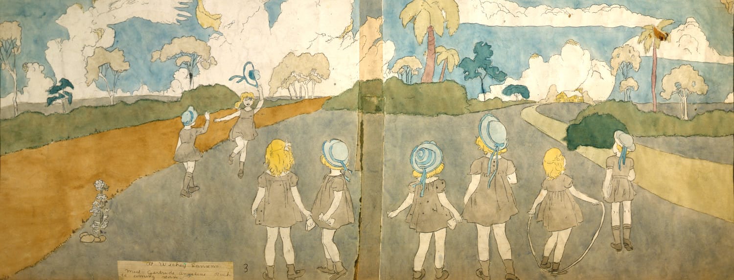 Researchers examining Darger’s work have pointed out that the artist was influenced by his exposure to Victorian children’s literature when he was a boy, as well as by the public image of childhood wholesomeness that was part of the popular culture of the late 1800s and the early 20th century. Darger, who was born in Chicago, spent his early boyhood with his father; his mother died when he was four years old.