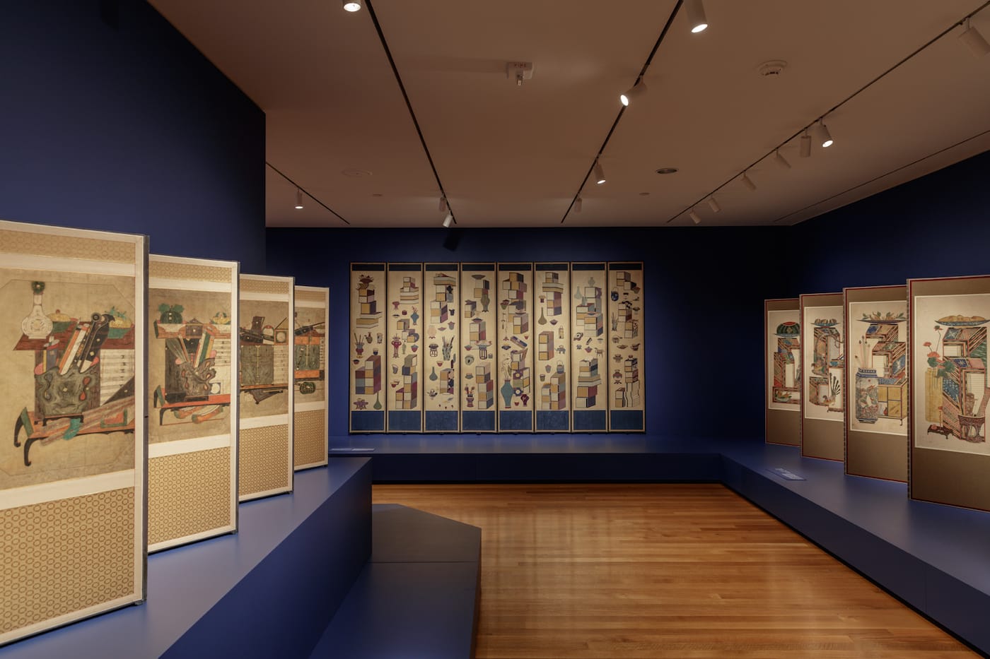 For nearly a year, the first major exhibition of chaekgeori in the United States has been traveling across the country, beginning at Stony Brook University and moving to the Spencer Museum of Art. Now The Power and Pleasure of Possessions in Korean Painted Screens is at its final destination at the Cleveland Museum of Art, where nine stunning examples of chaekgeori are currently on view. Although this is the smallest show of the three, it presents a compact and clear survey of how this unique genre evolved, featuring traditional works from the 19th-century as well as contemporary paintings that reinterpret the basic form.