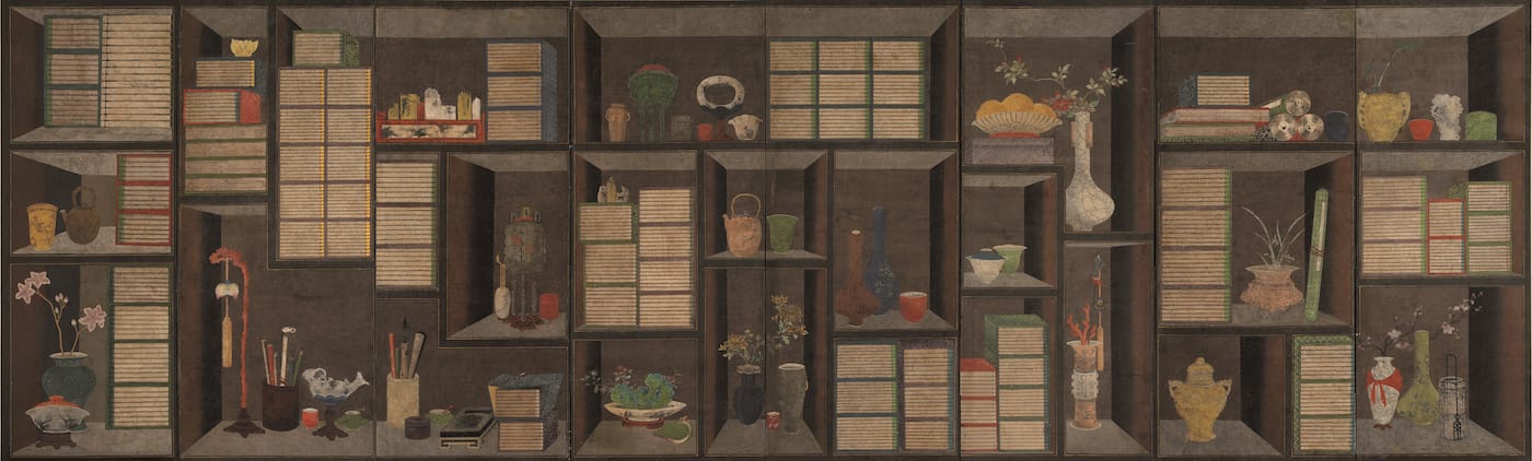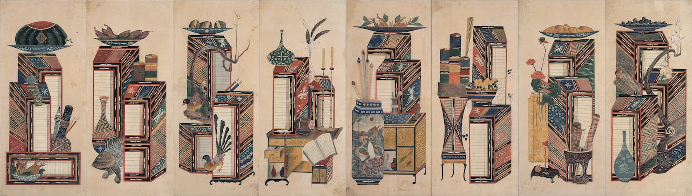 You could call it a very early precursor to the “shelfie.” Long before we were snapping pictures of our bookshelves to show off our literary troves on the ‘gram, there was chaekgeori, a style of Korean still-life painting that emerged in the late 18th century. Spread across the panels of folded screens, these images of near-life-size bookshelves were also meant to express an individual’s intellect, and often stood in a scholar’s room as a beautiful, dignifying backdrop.