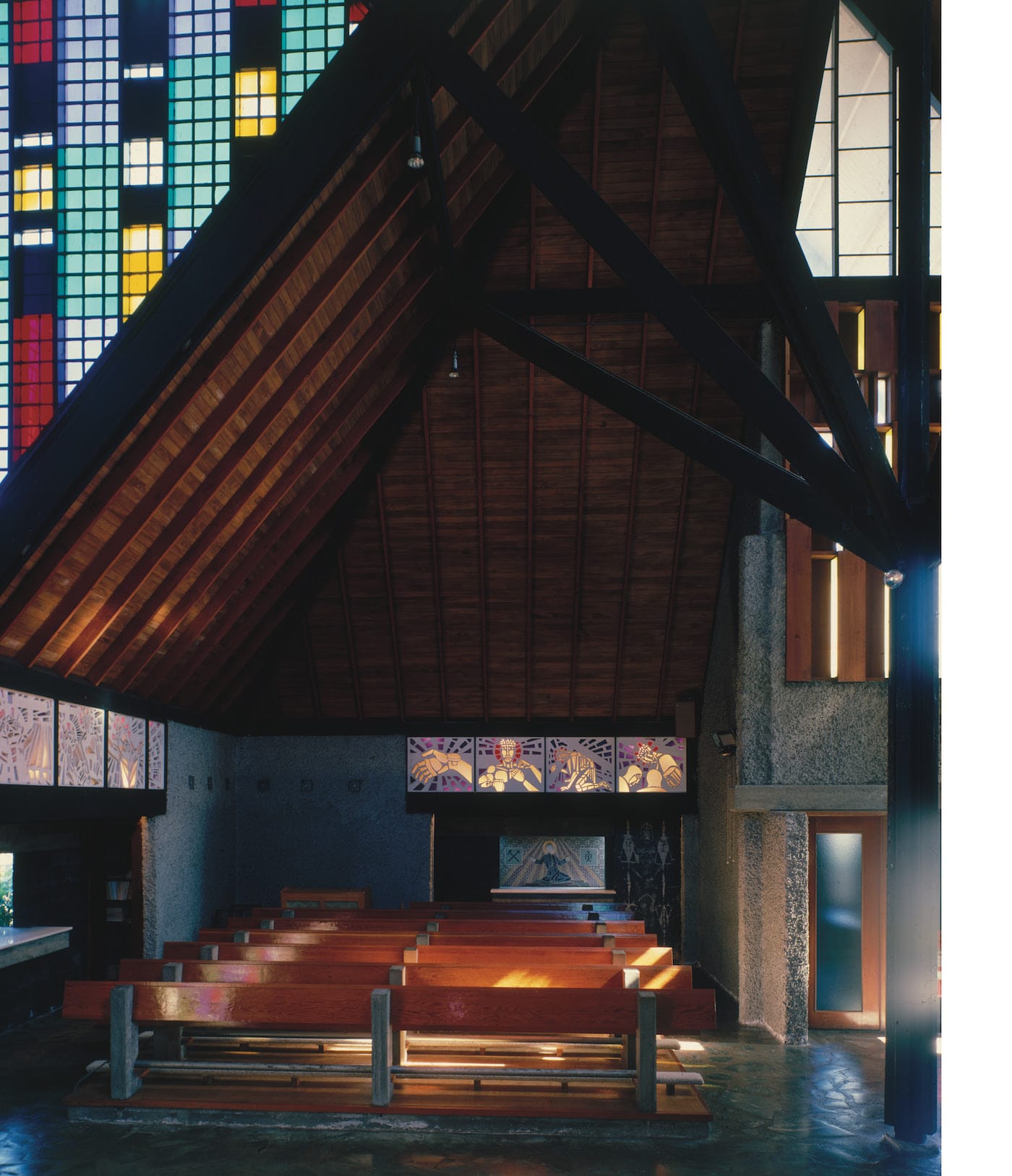 The finished Futuna was, at first, widely appreciated: seven years after the chapel opened in 1961, it won the New Zealand Institute of Architects Gold Medal. In the 1990s, however, it was increasingly used for nonreligious seminars, and eight years later the Society of Mary announced it would close the chapel because of a decline in Marist devotions. What followed was a long battle between Scott’s children and the land’s new owner, a local builder, during which the chapel was damaged by water, had its pews demolished, and even had some internal parts stolen, including a carved figure of Christ on a crucifix. Only in 2003 was Friends of Futuna Trust formed, and only four years later did the group successfully purchase the building. It reopened in March 2008, after nearly two decades spent in glum slumber.