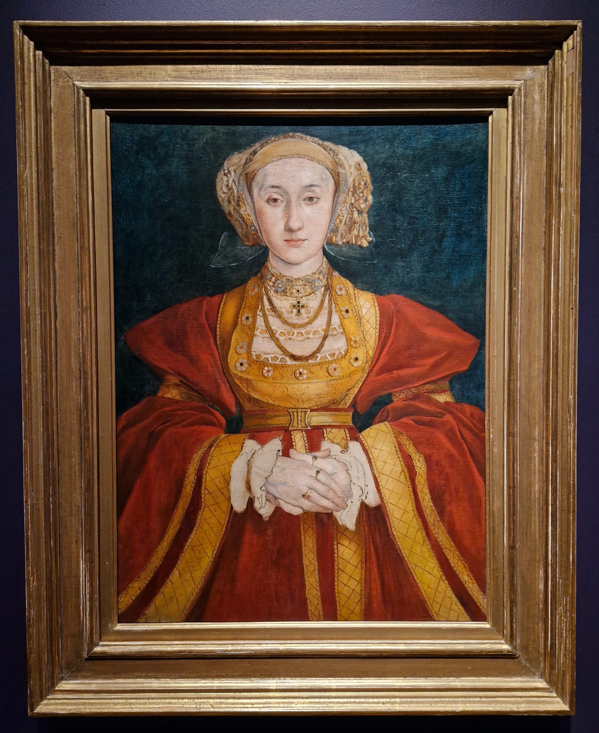 However, even as Bolland tries to elaborate on the women’s lives she comes up against the dearth of primary biographical sources. The show offers an expanded picture of the court’s workings and the everyday items people used — not a bad thing at all — but adds precious little insight to the queens’ characters beyond what’s already known from existing key texts. Although we can strain to interpret queenly attire and emblems in their portraits, not much concrete information can be inferred. Anne Boleyn’s famous portrait by an uknown artist is actually a posthumous commemorative creation, we learn, while Jane Seymour’s personal heraldic badge, carved from Reigate stone around 1536, details a phoenix rising from a castle, from which Tudor roses bloom; the caption speculates that the phoenix, a symbol of rebirth, may signify her reign “as a new beginning.” There is also Anne of Cleve’s 1539–40 account book detailing lavish purchases of fashionable English-style dress, payments to musicians, and, interestingly, some gambling debts.